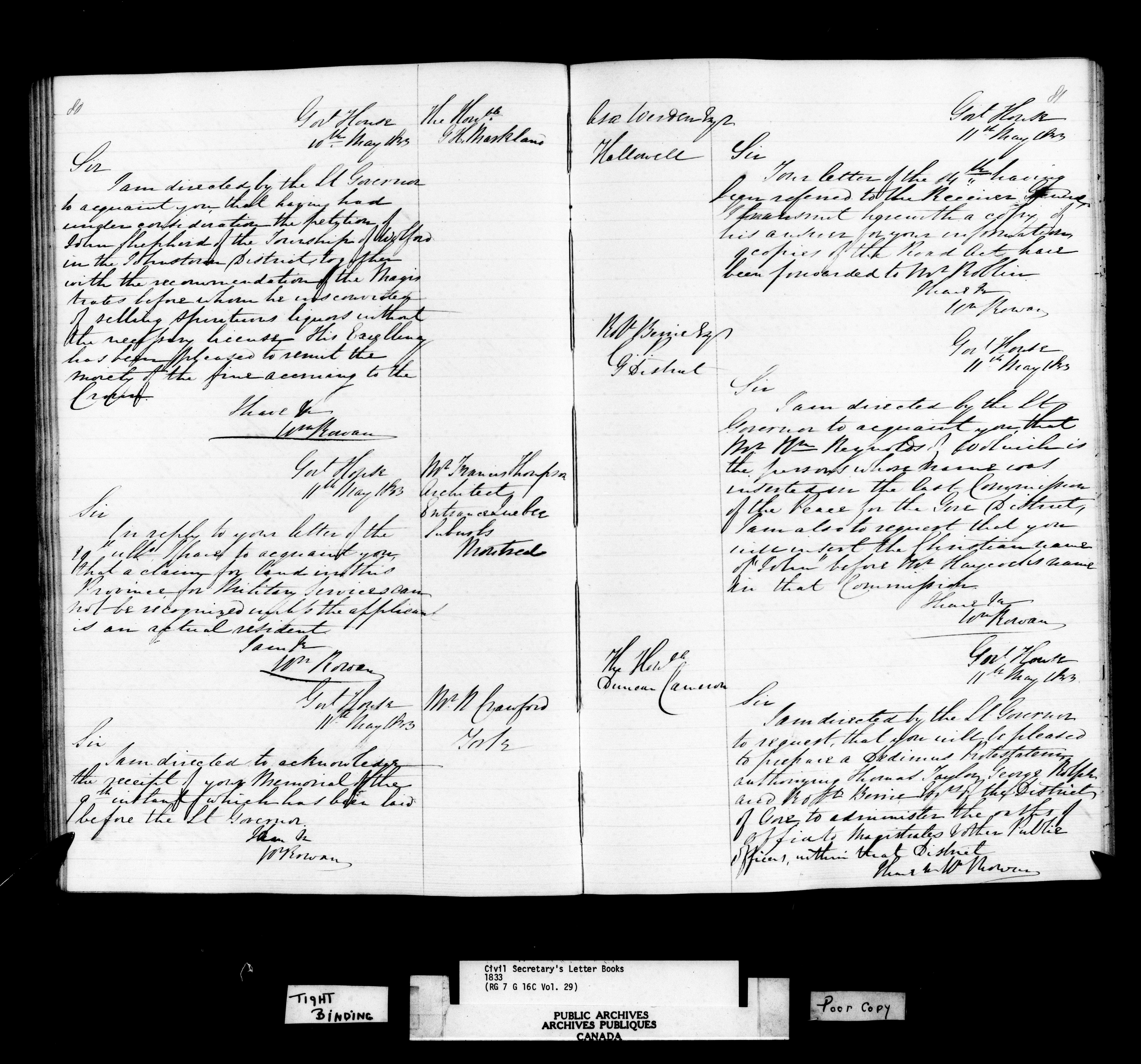 Canada, Governor General's Office, Civil Secretary's Letterbooks, Upper Canada - C-10792