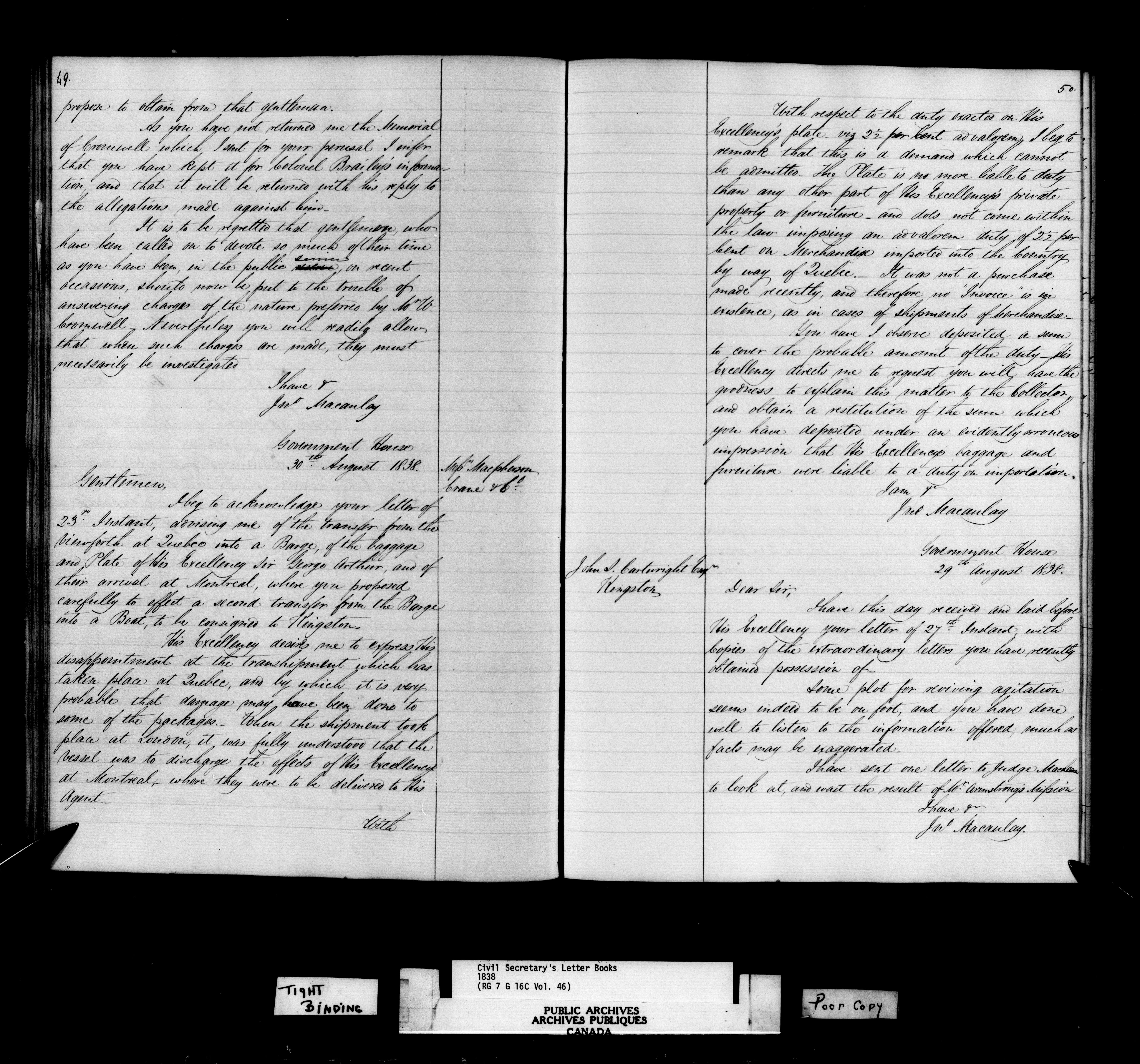 Canada, Governor General's Office, Civil Secretary's Letterbooks, Upper Canada - C-10795