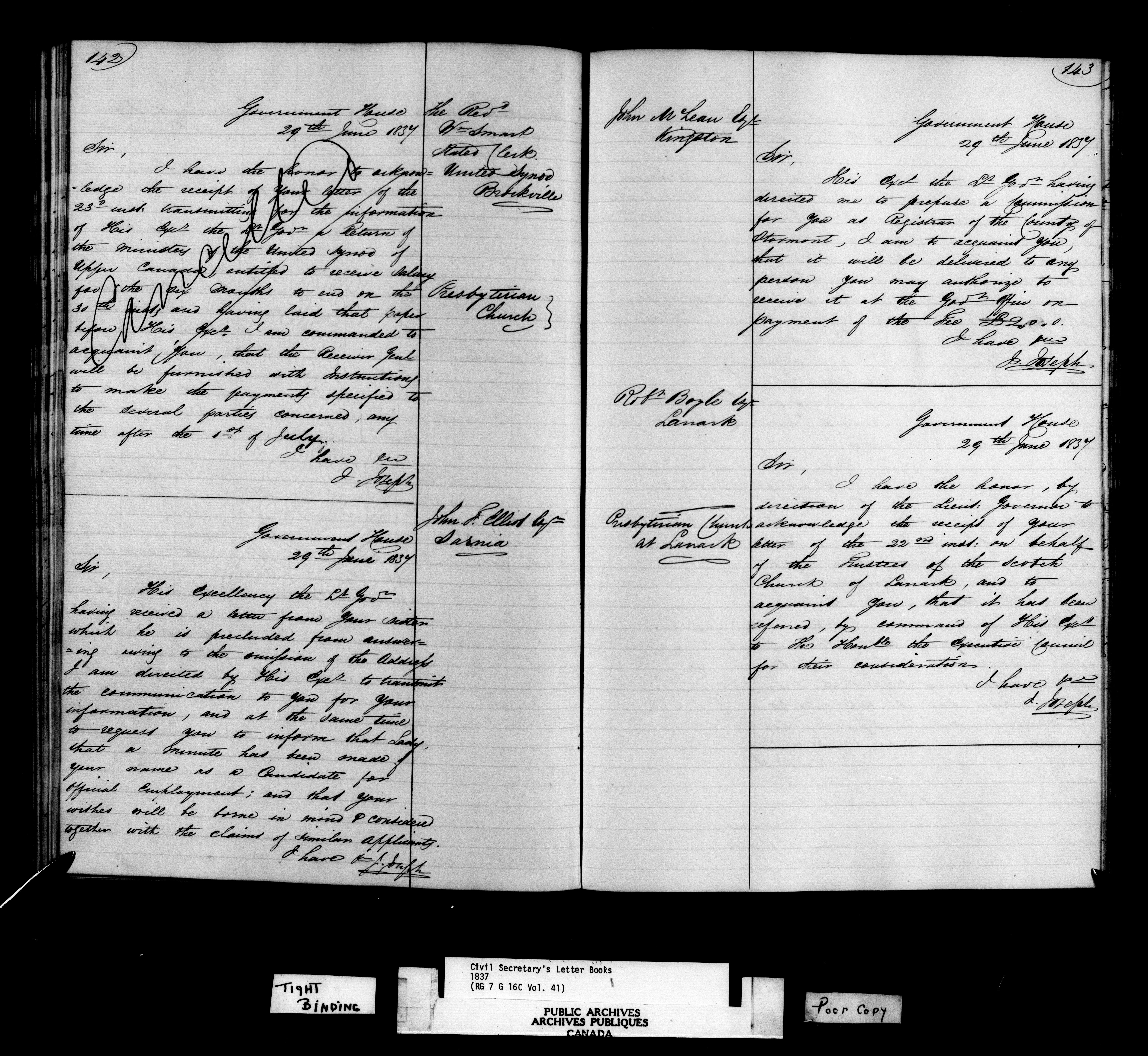 Canada, Governor General's Office, Civil Secretary's Letterbooks, Upper Canada - C-10795