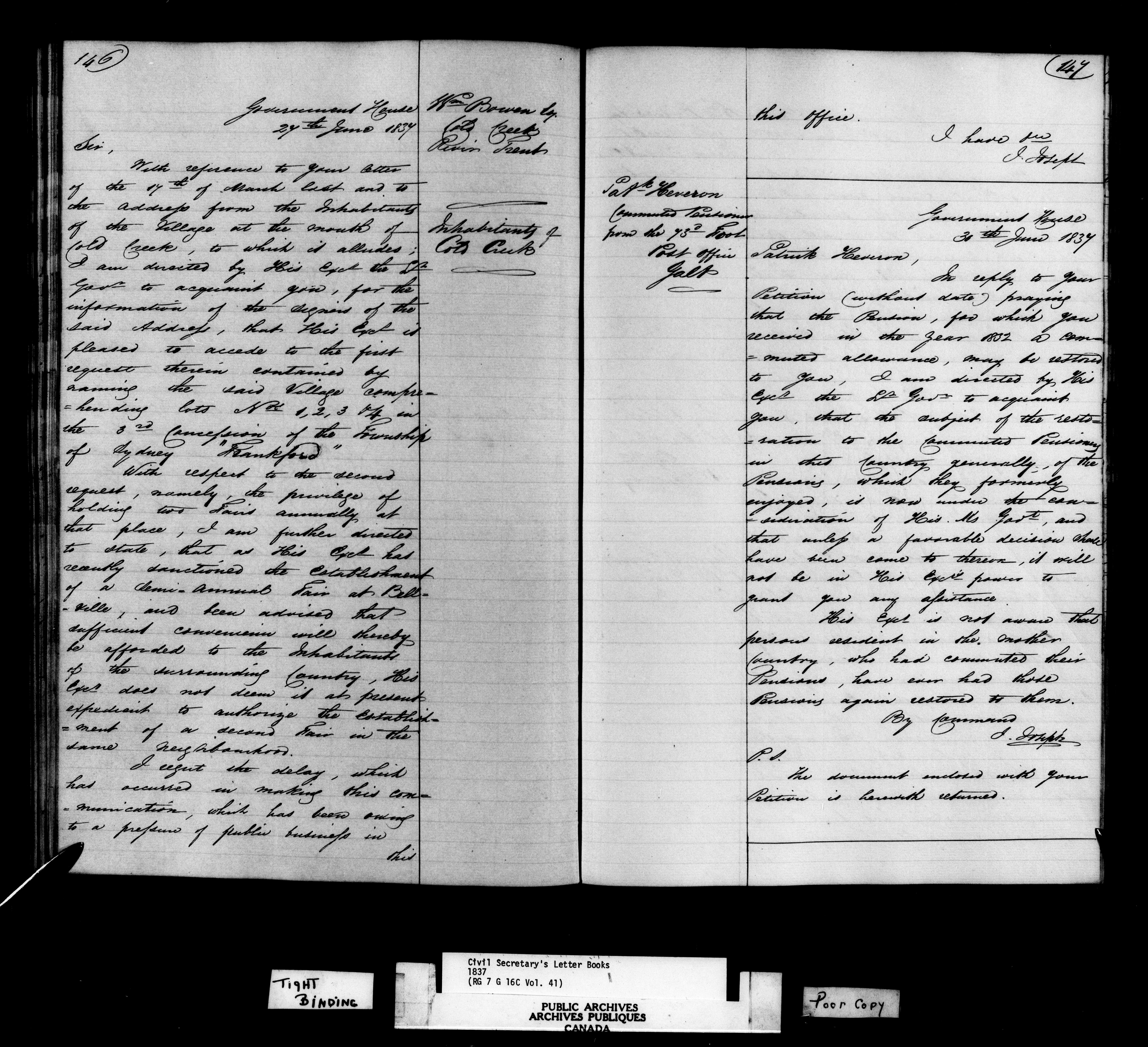 Canada, Governor General's Office, Civil Secretary's Letterbooks, Upper Canada - C-10795