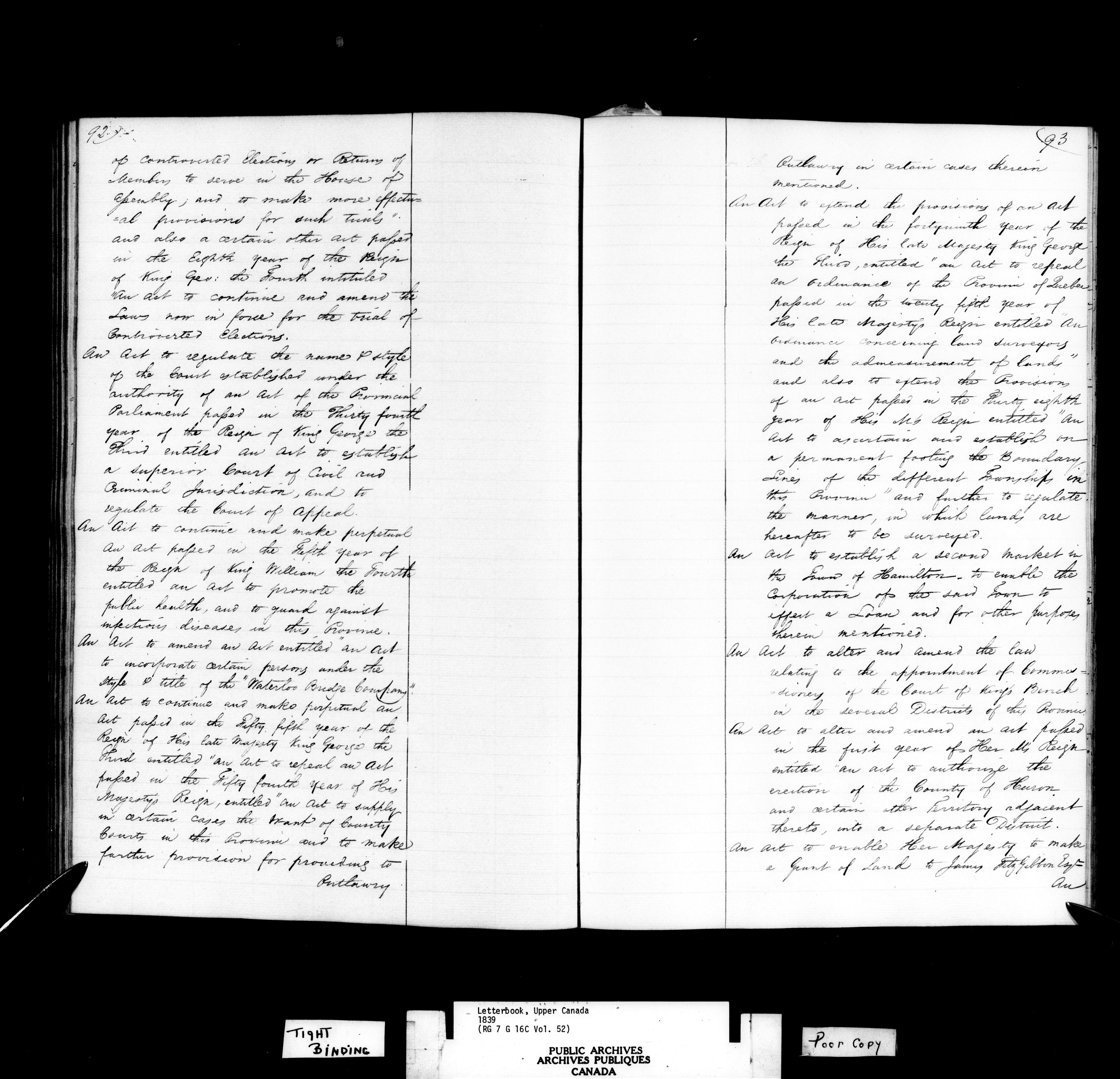 Canada, Governor General's Office, Civil Secretary's Letterbooks, Upper Canada - C-10796