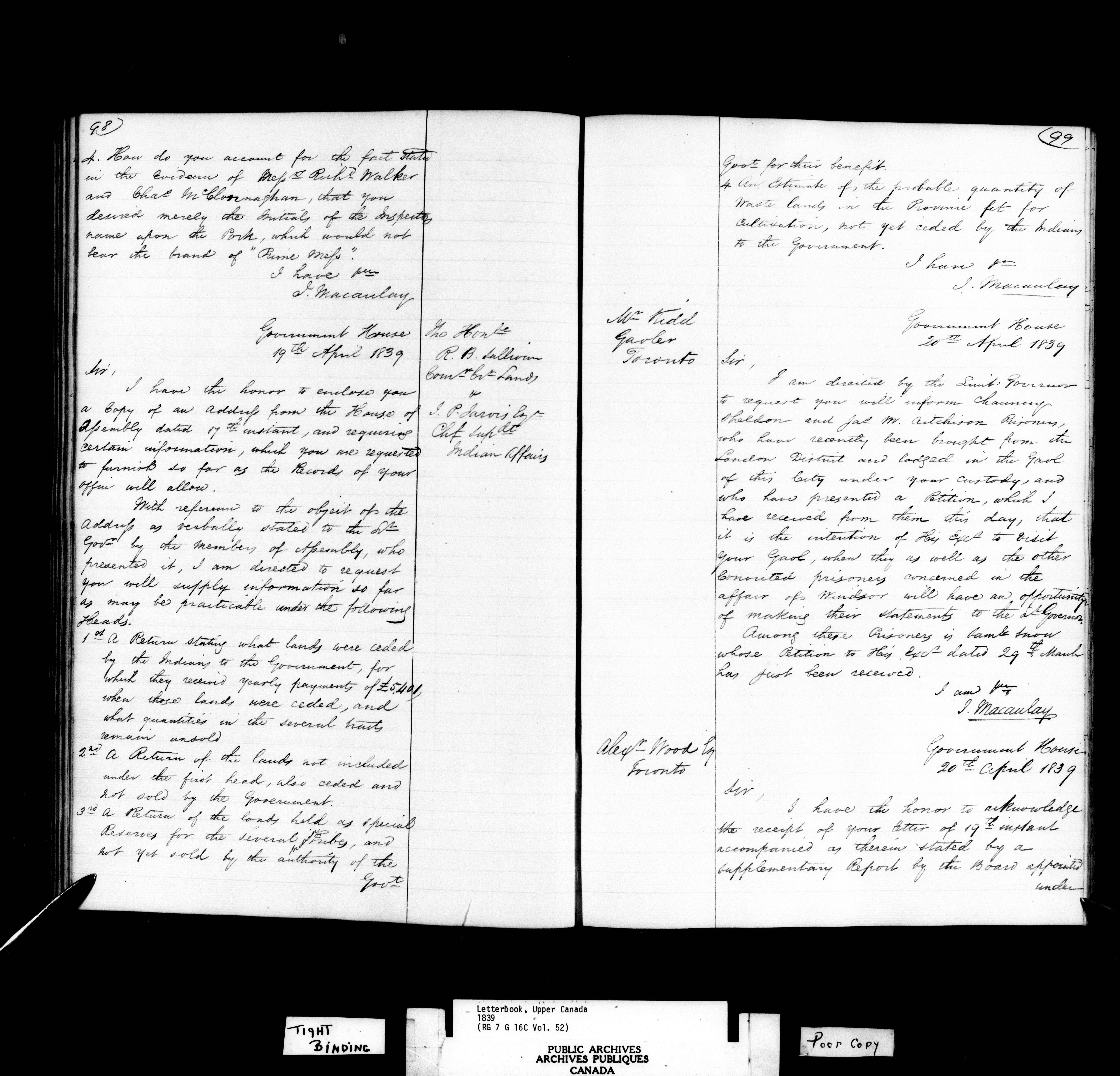 Canada, Governor General's Office, Civil Secretary's Letterbooks, Upper Canada - C-10796