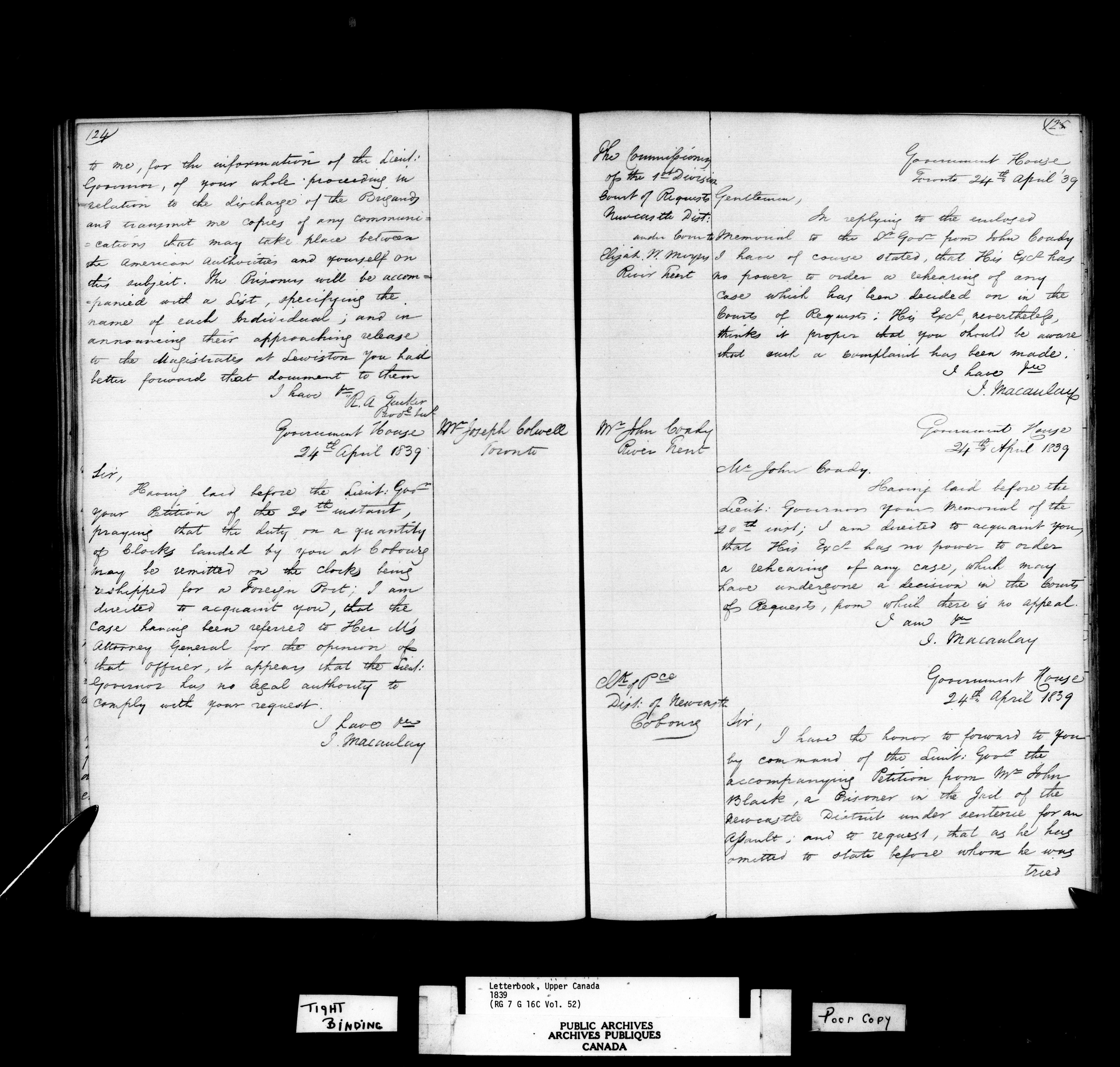 Canada, Governor General's Office, Civil Secretary's Letterbooks, Upper Canada - C-10796