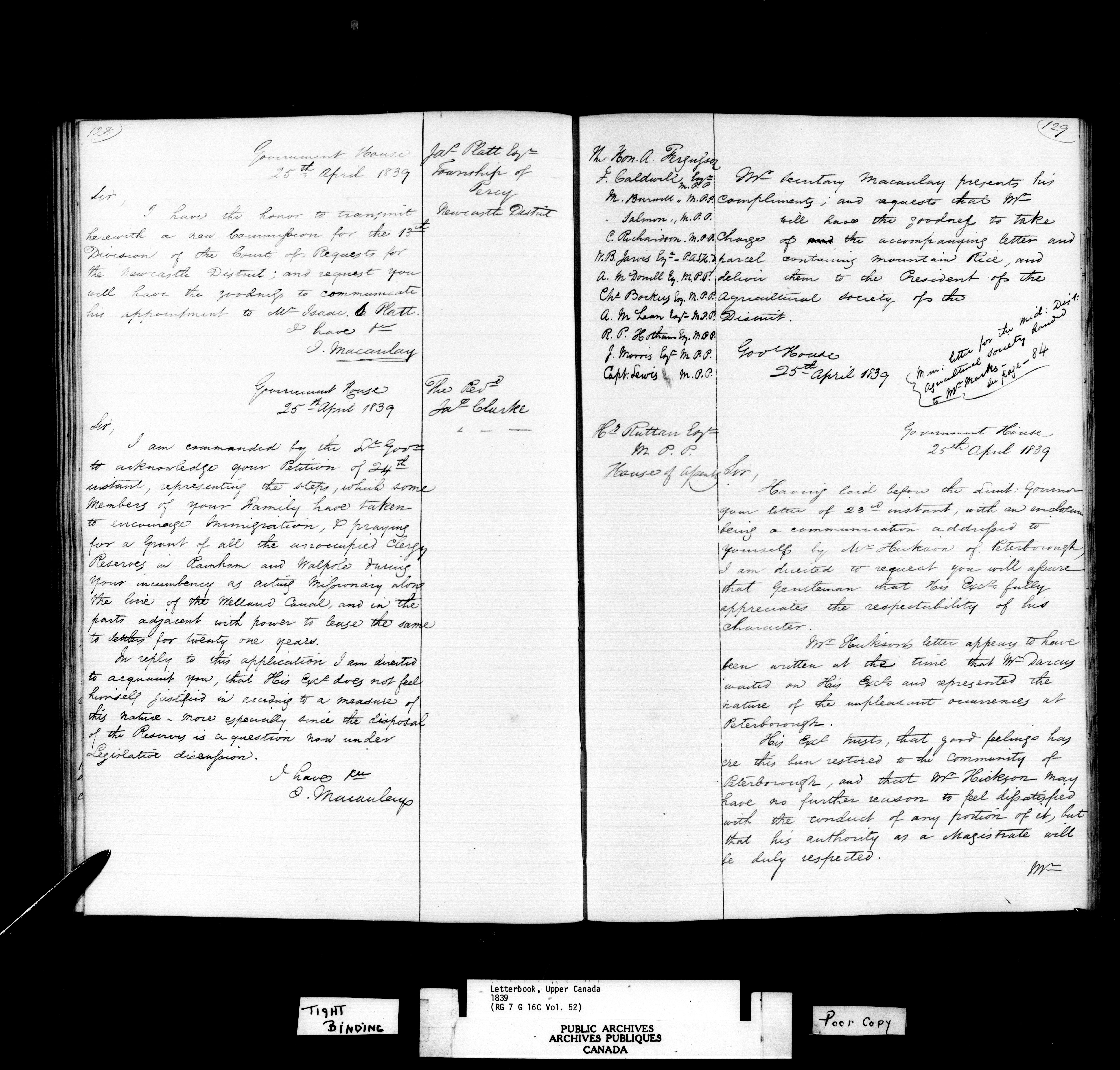 Canada, Governor General's Office, Civil Secretary's Letterbooks, Upper Canada - C-10796
