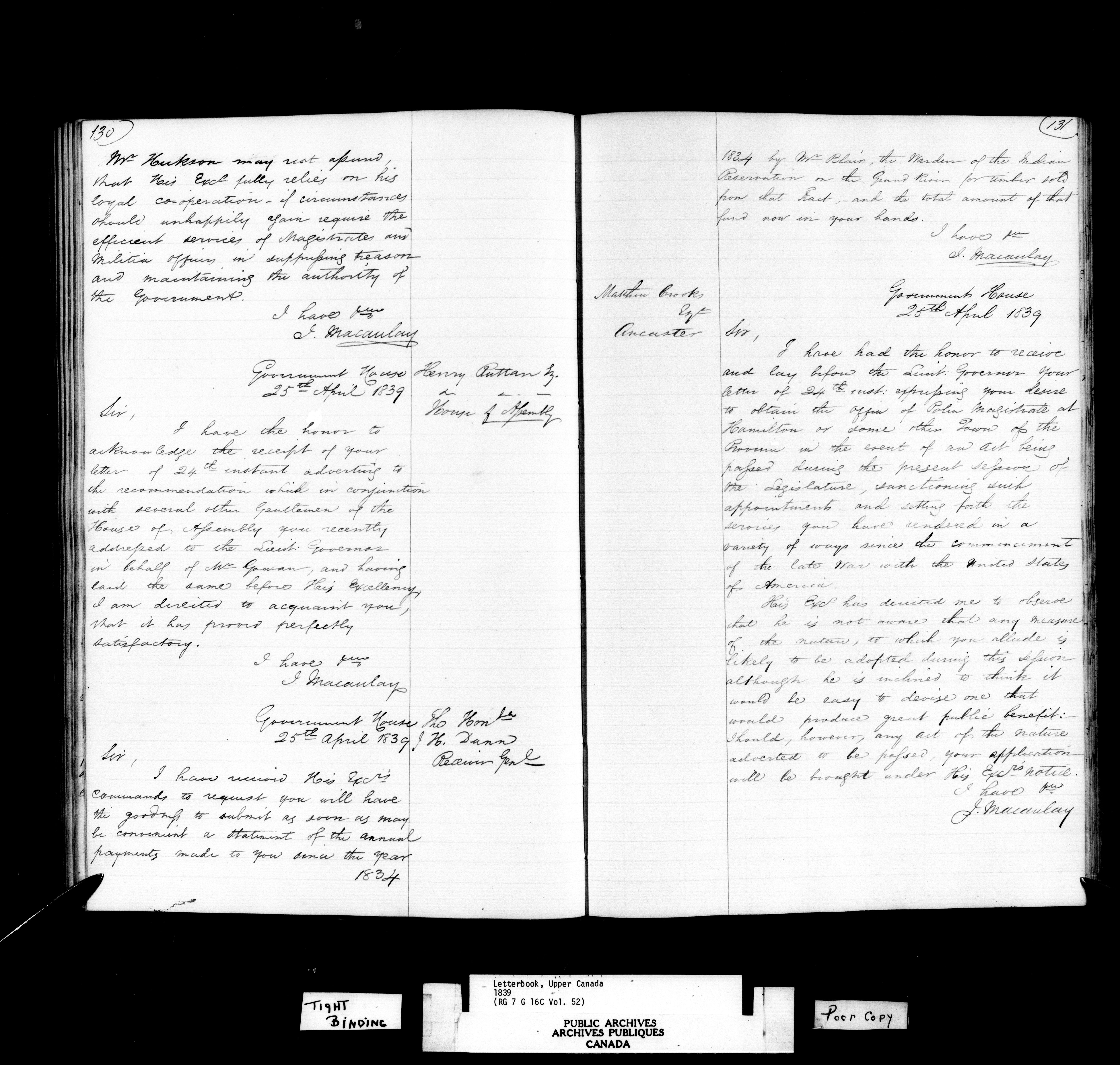 Canada, Governor General's Office, Civil Secretary's Letterbooks, Upper Canada - C-10796