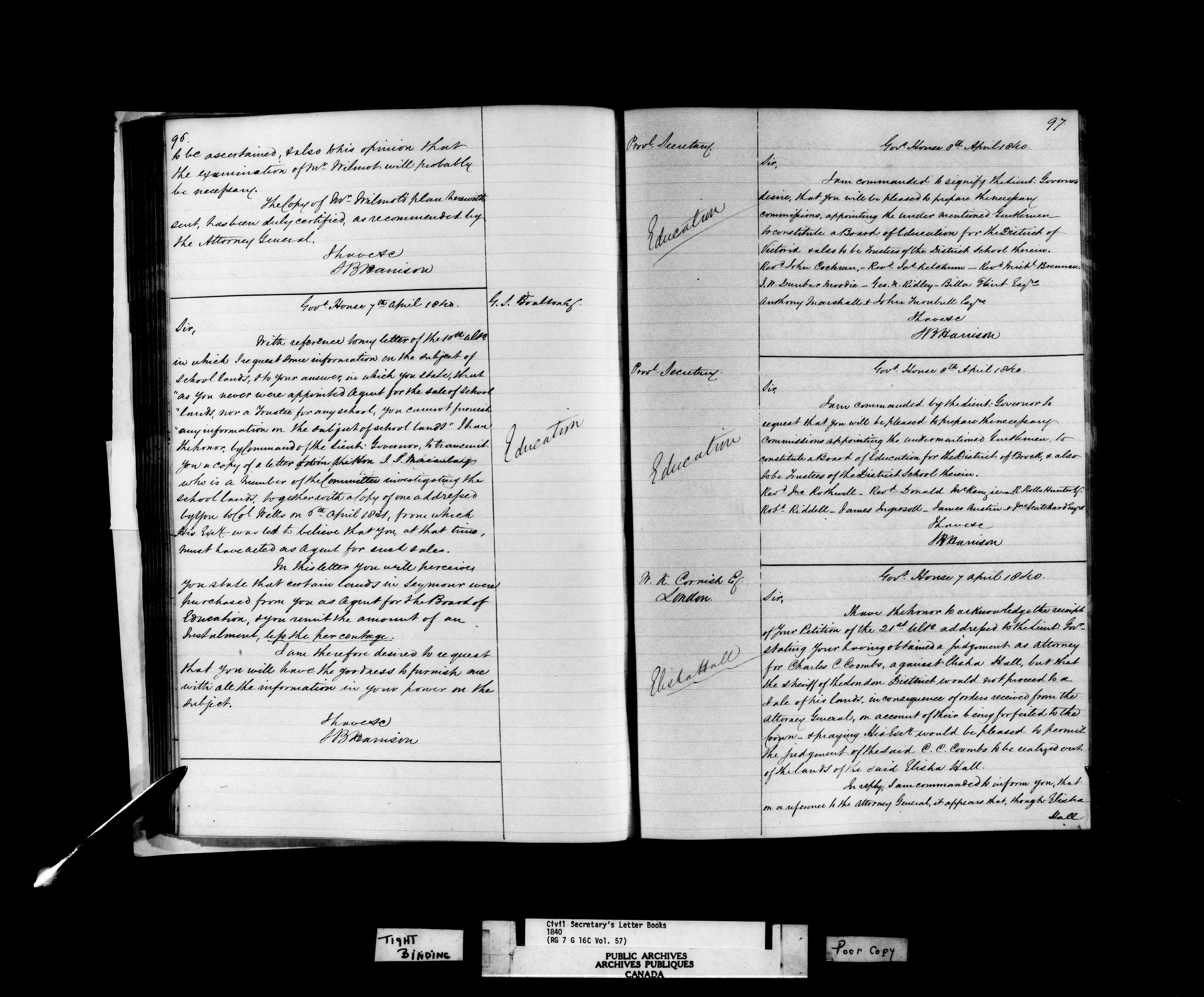 Canada, Governor General's Office, Civil Secretary's Letterbooks, Upper Canada - C-10797
