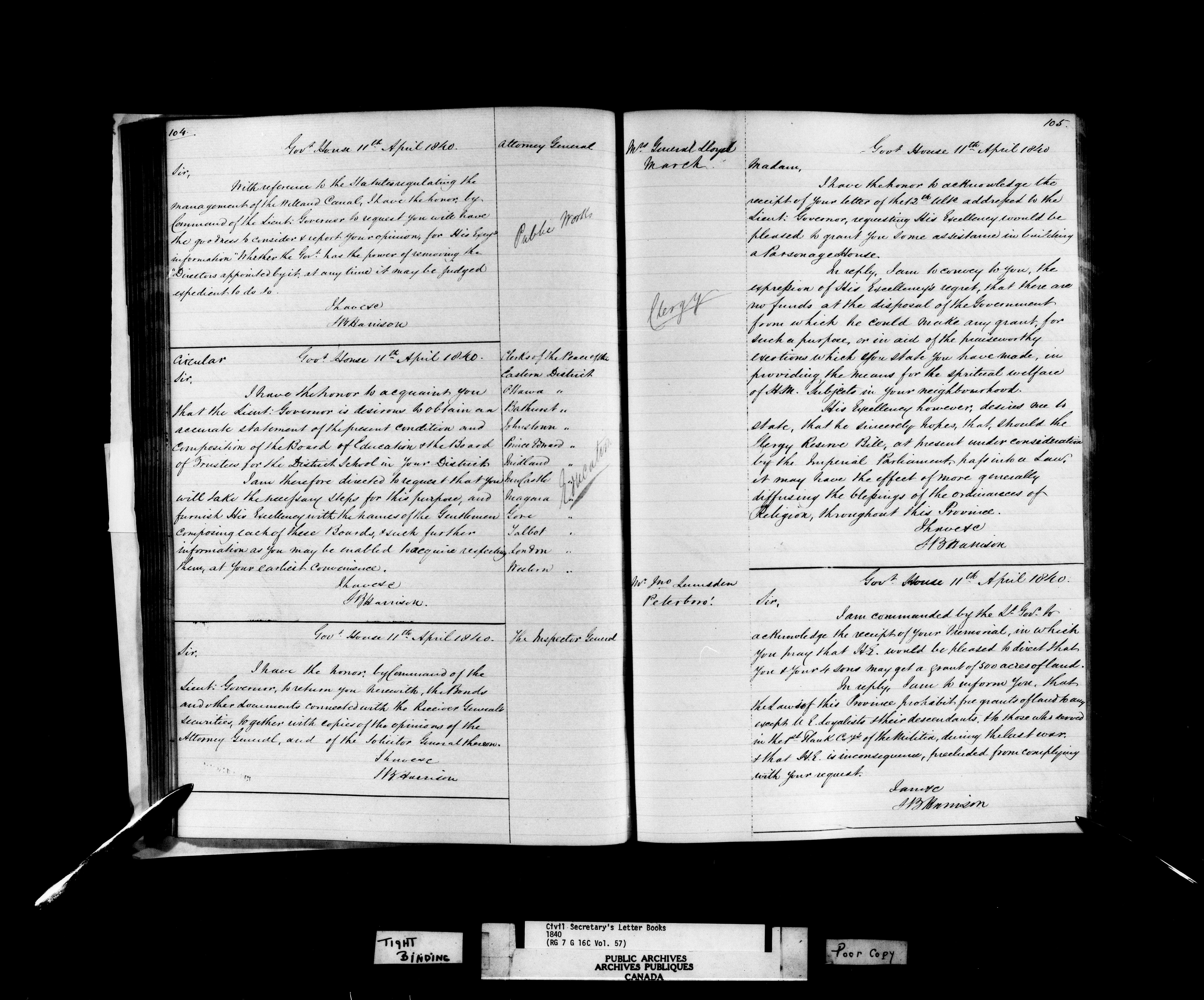 Canada, Governor General's Office, Civil Secretary's Letterbooks, Upper Canada - C-10797