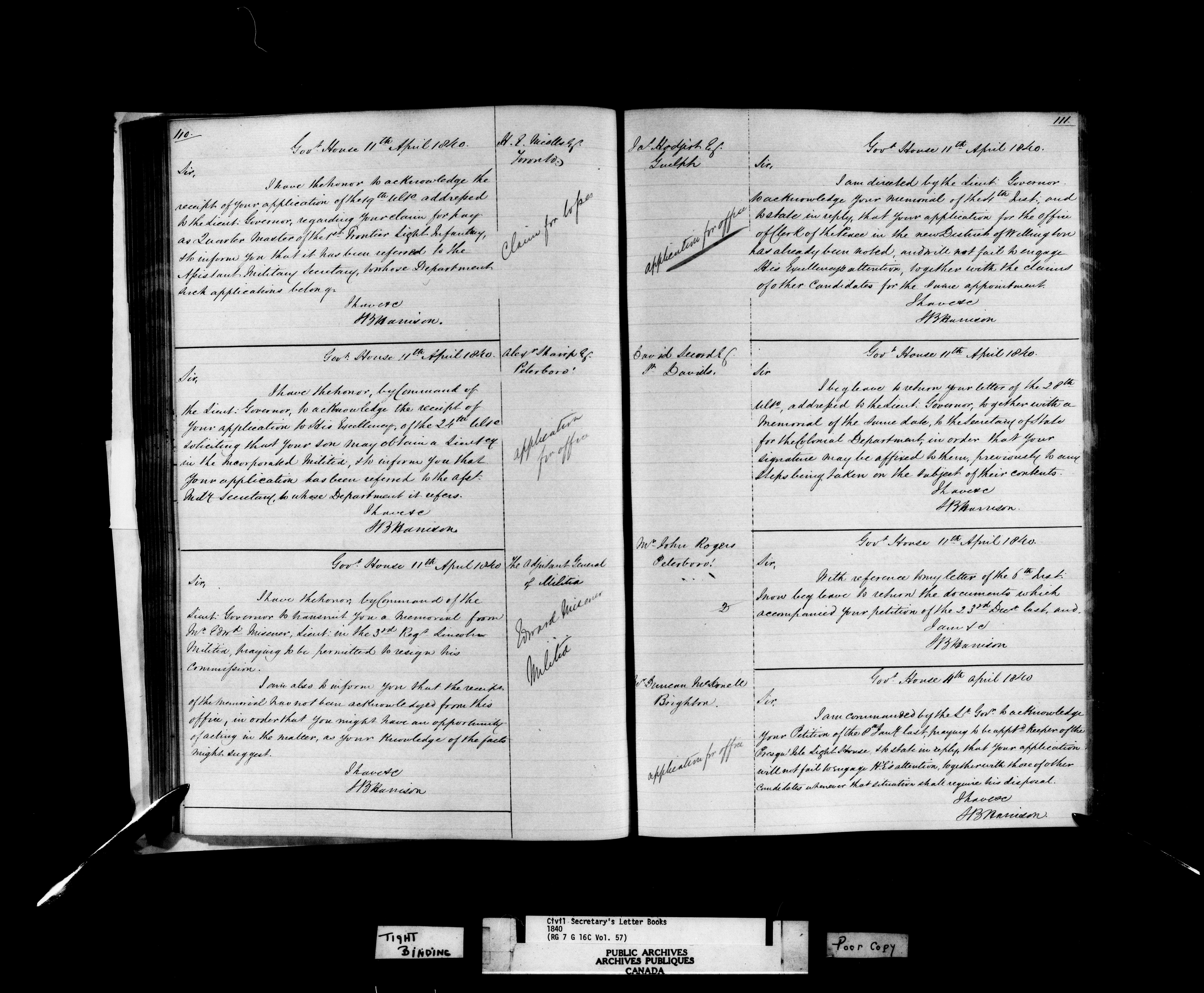 Canada, Governor General's Office, Civil Secretary's Letterbooks, Upper Canada - C-10797