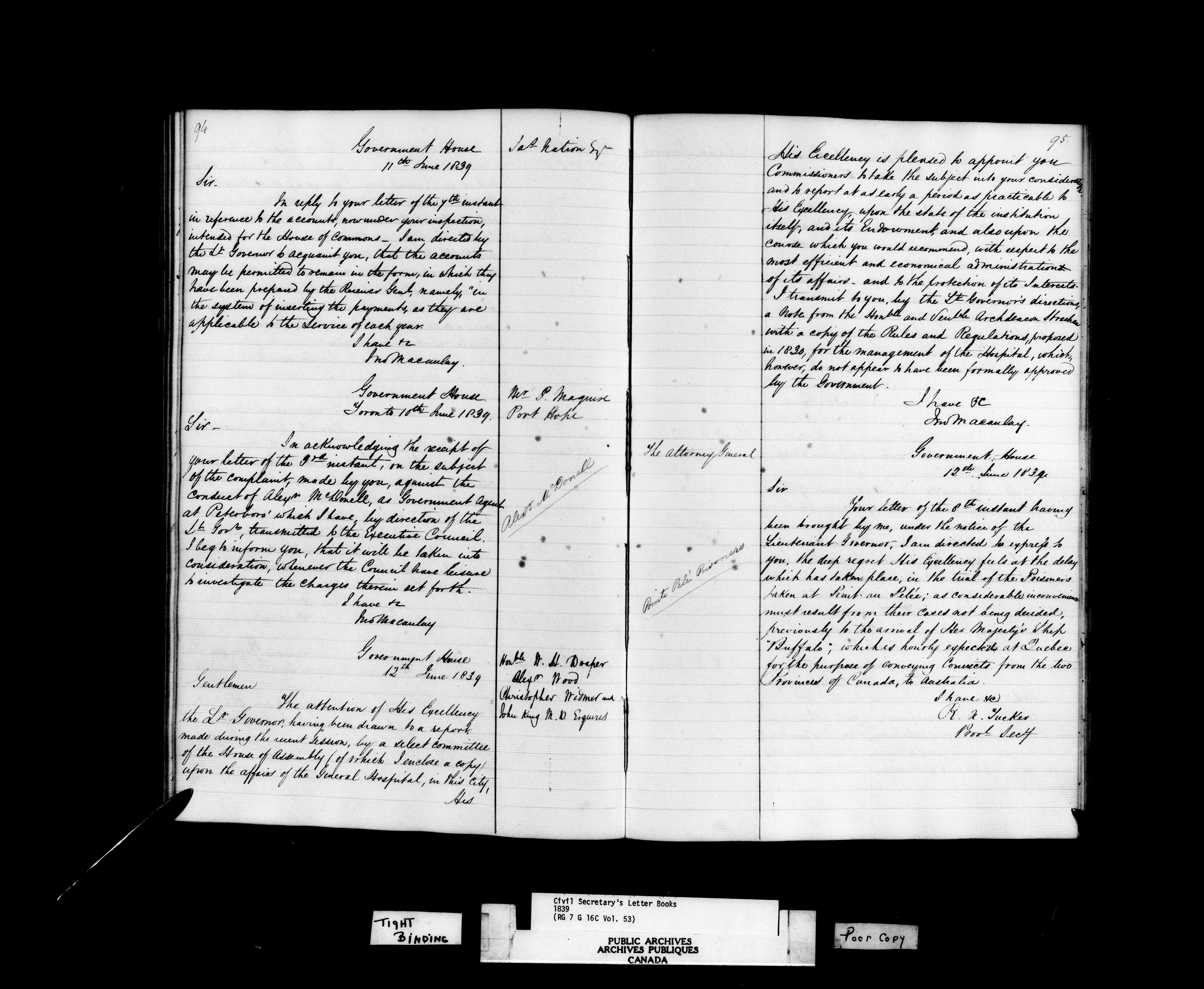 Canada, Governor General's Office, Civil Secretary's Letterbooks, Upper Canada - C-10797
