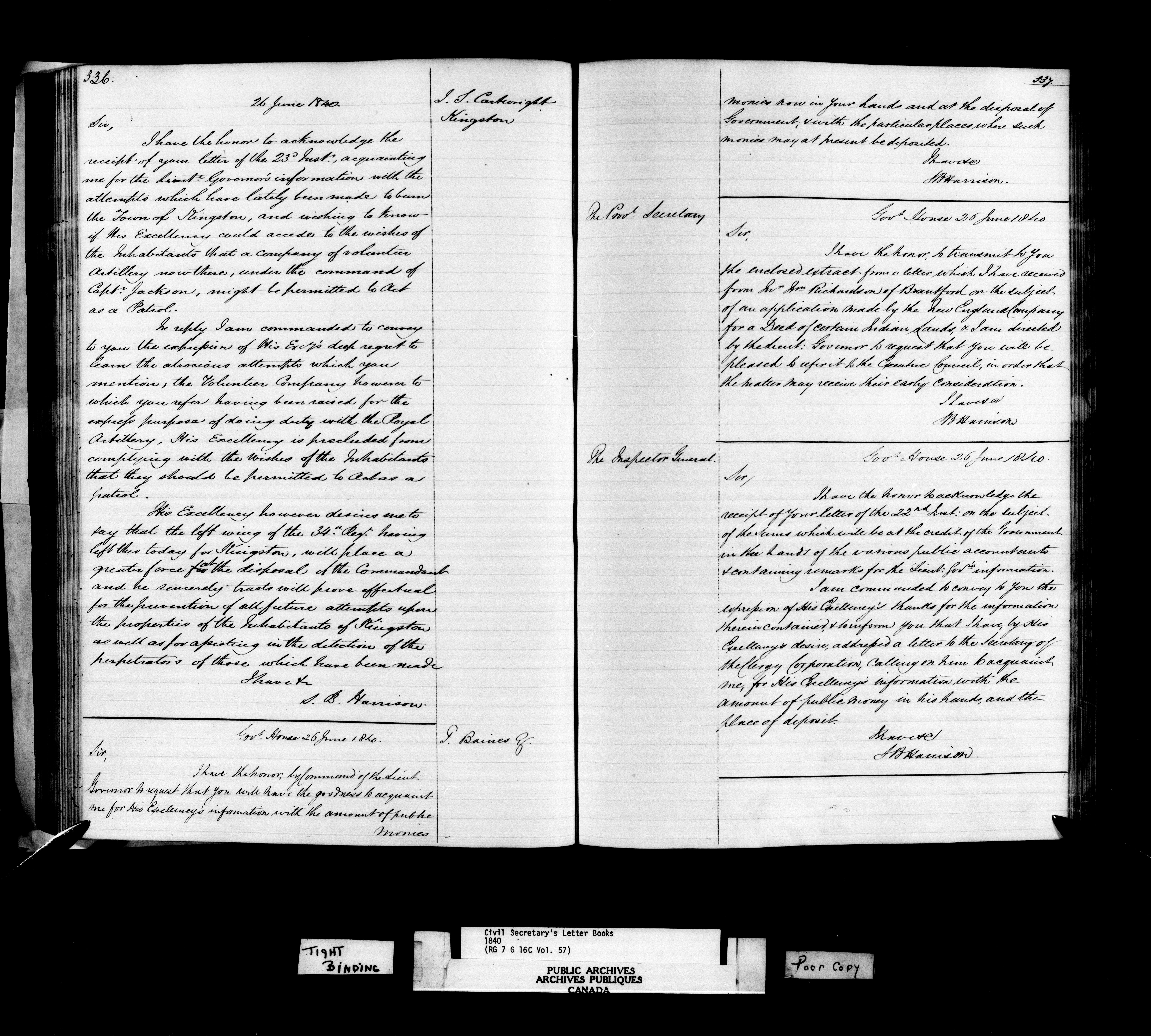 Canada, Governor General's Office, Civil Secretary's Letterbooks, Upper Canada - C-10798