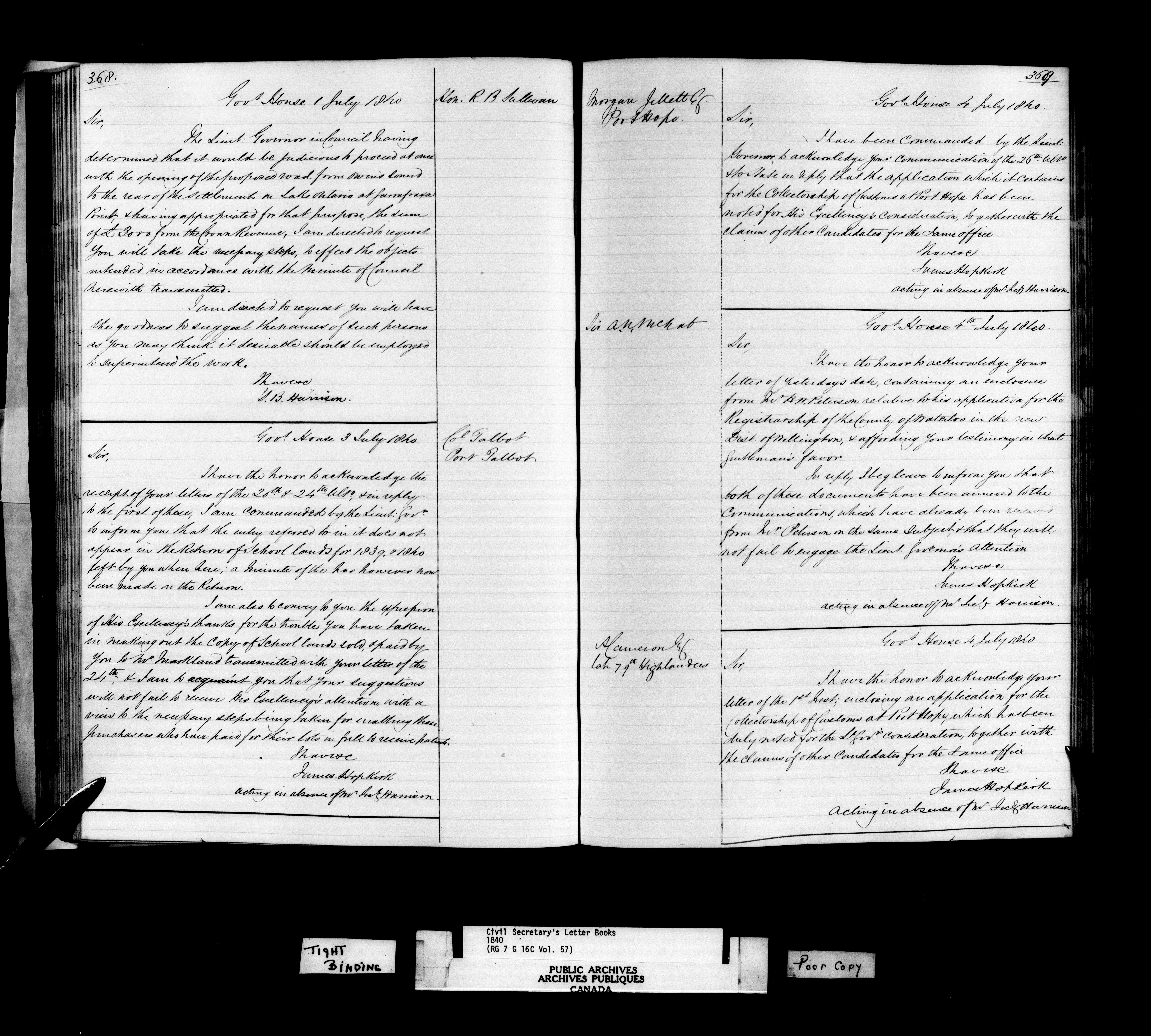 Canada, Governor General's Office, Civil Secretary's Letterbooks, Upper Canada - C-10798