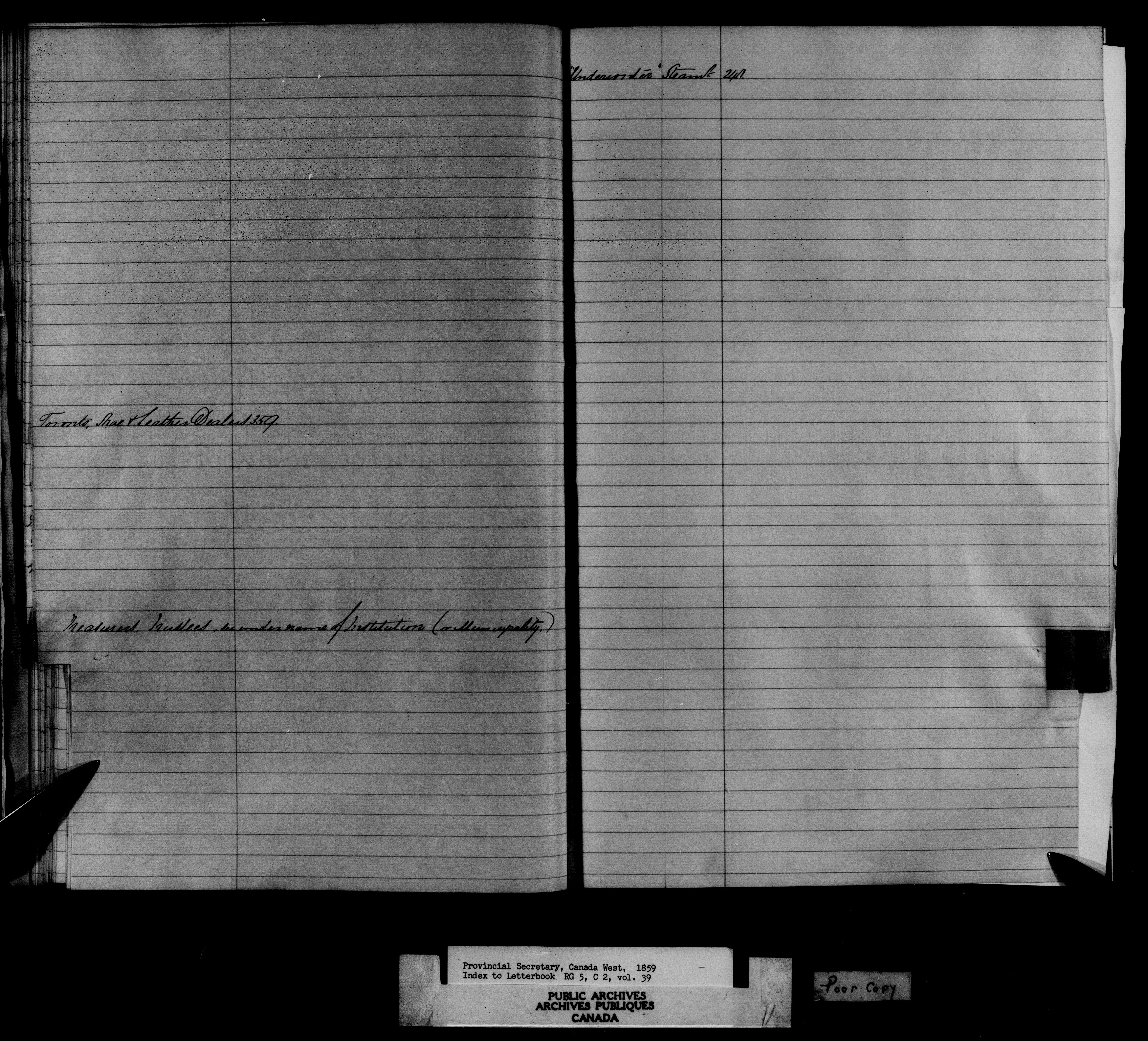 Canada West : Indexes to Provincial Secretary letterbooks - 10800