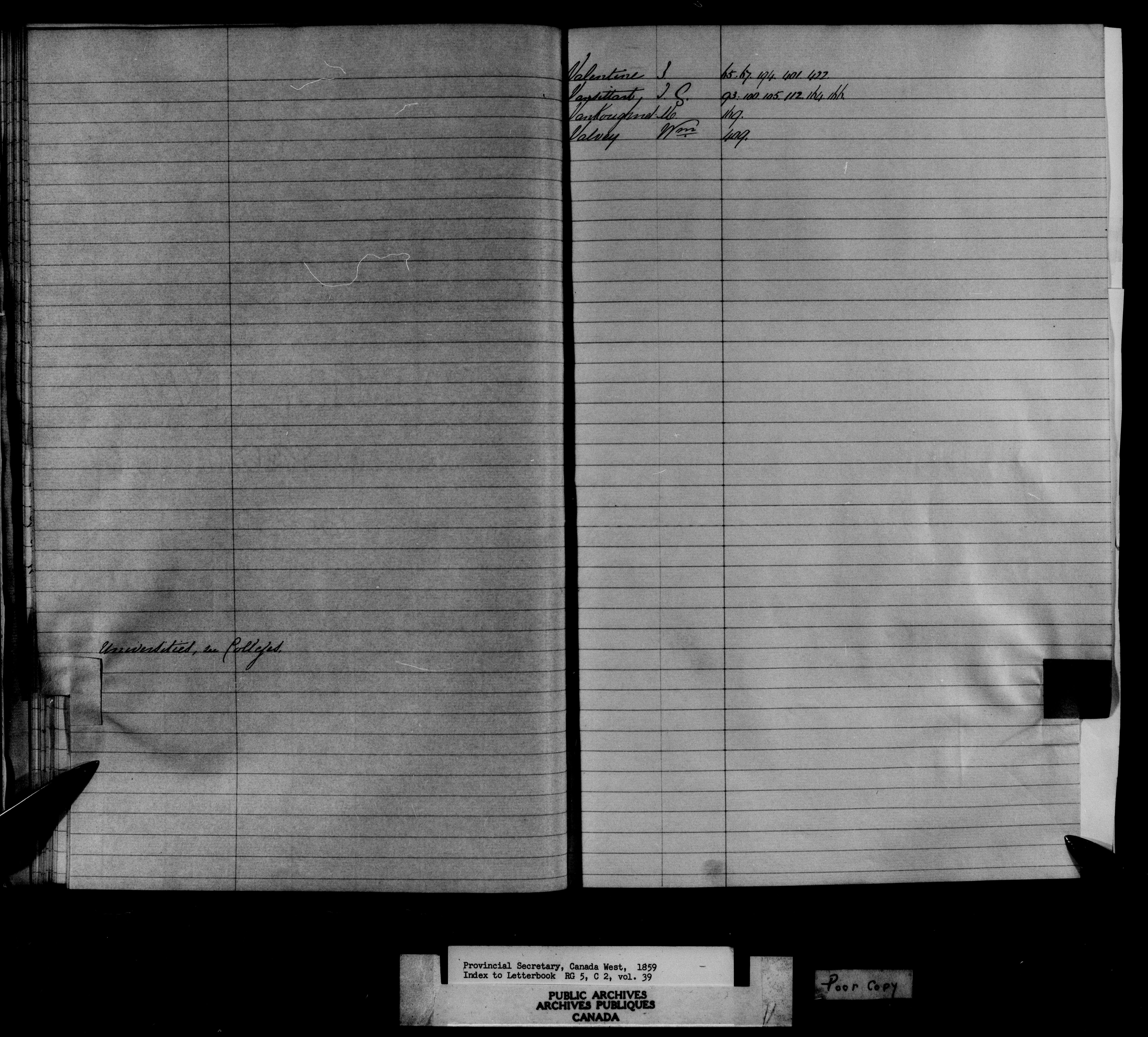 Canada West : Indexes to Provincial Secretary letterbooks - 10800