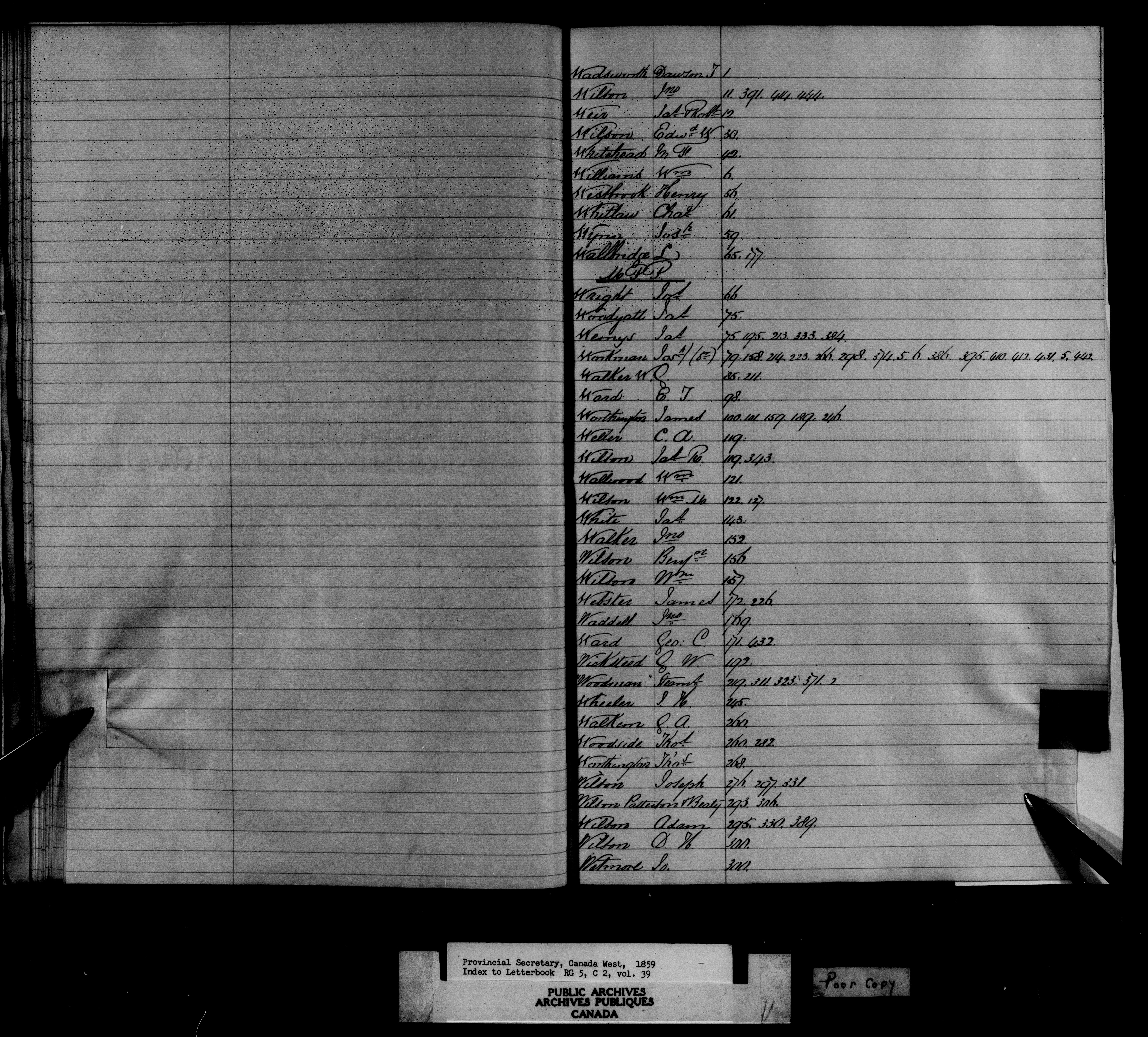 Canada West : Indexes to Provincial Secretary letterbooks - 10800