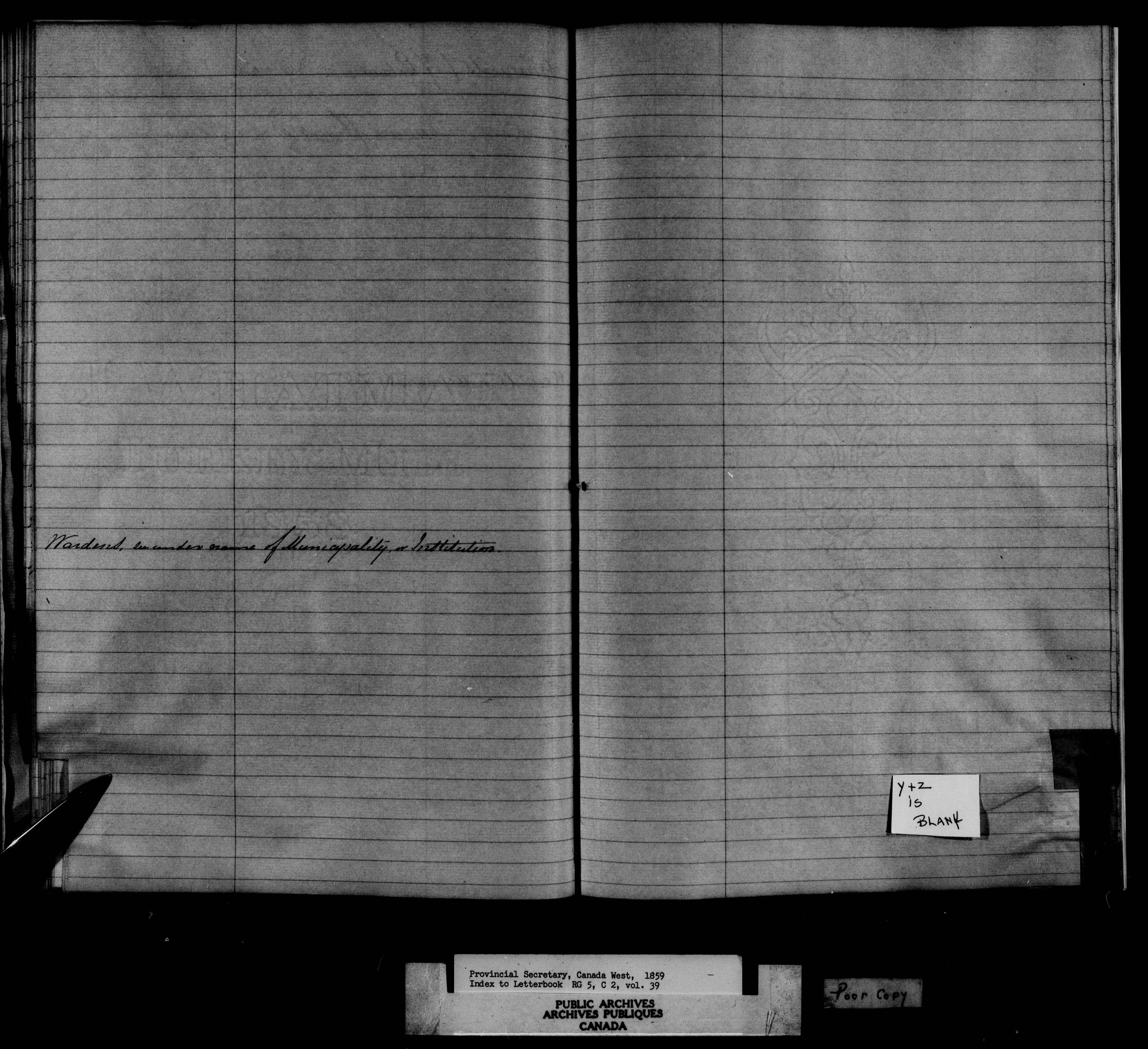 Canada West : Indexes to Provincial Secretary letterbooks - 10800