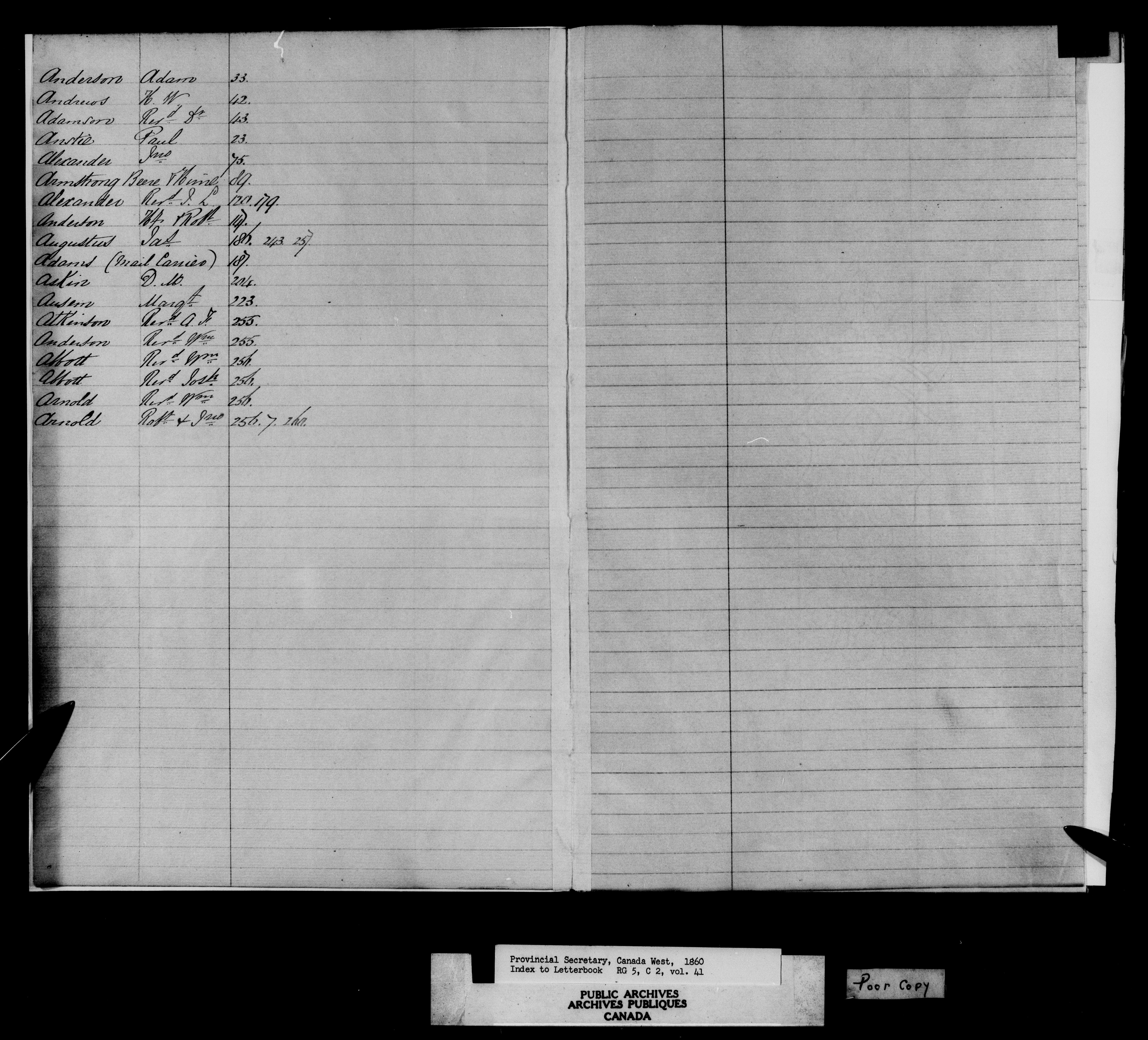 Canada West : Indexes to Provincial Secretary letterbooks - 10800