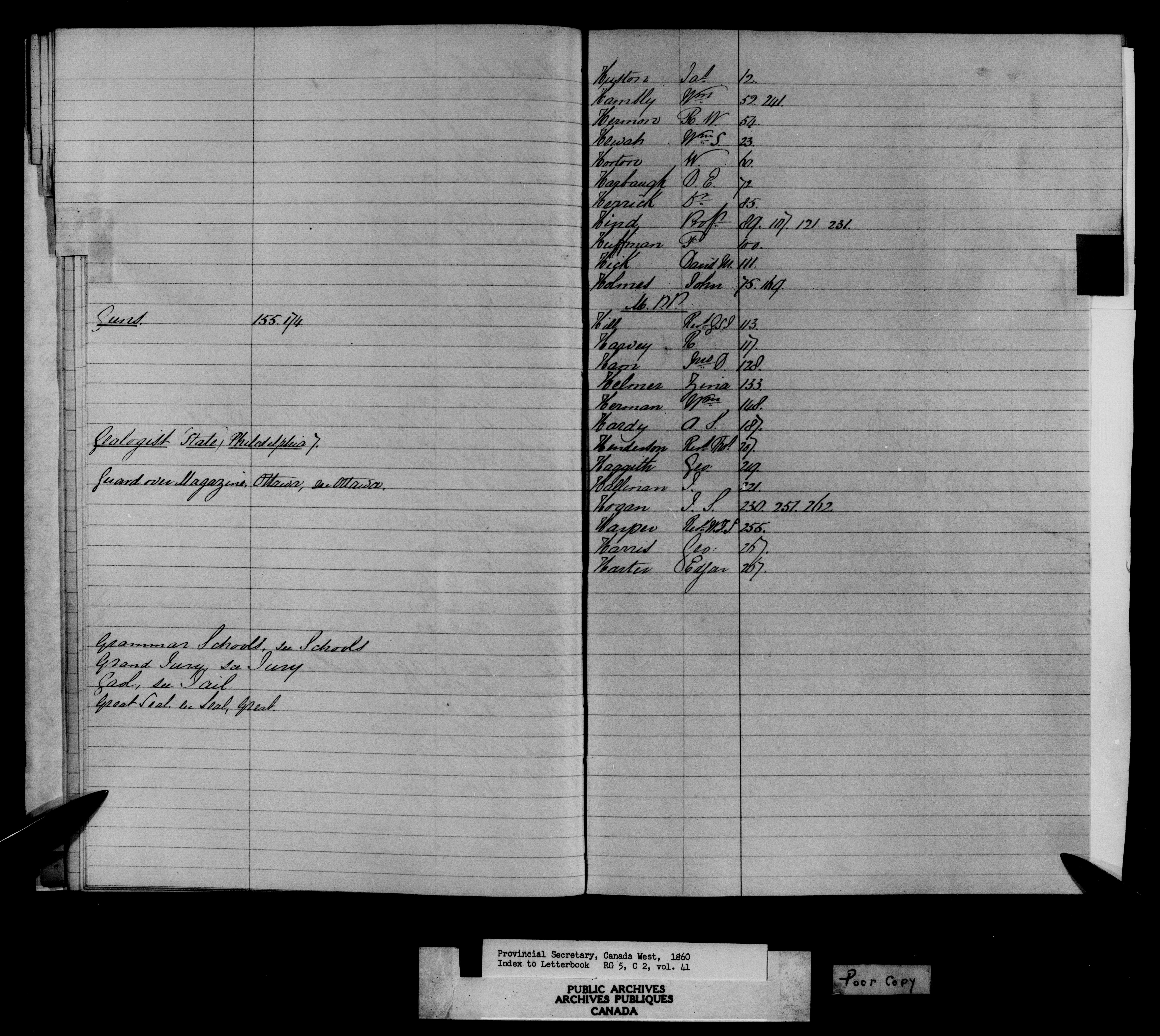 Canada West : Indexes to Provincial Secretary letterbooks - 10800