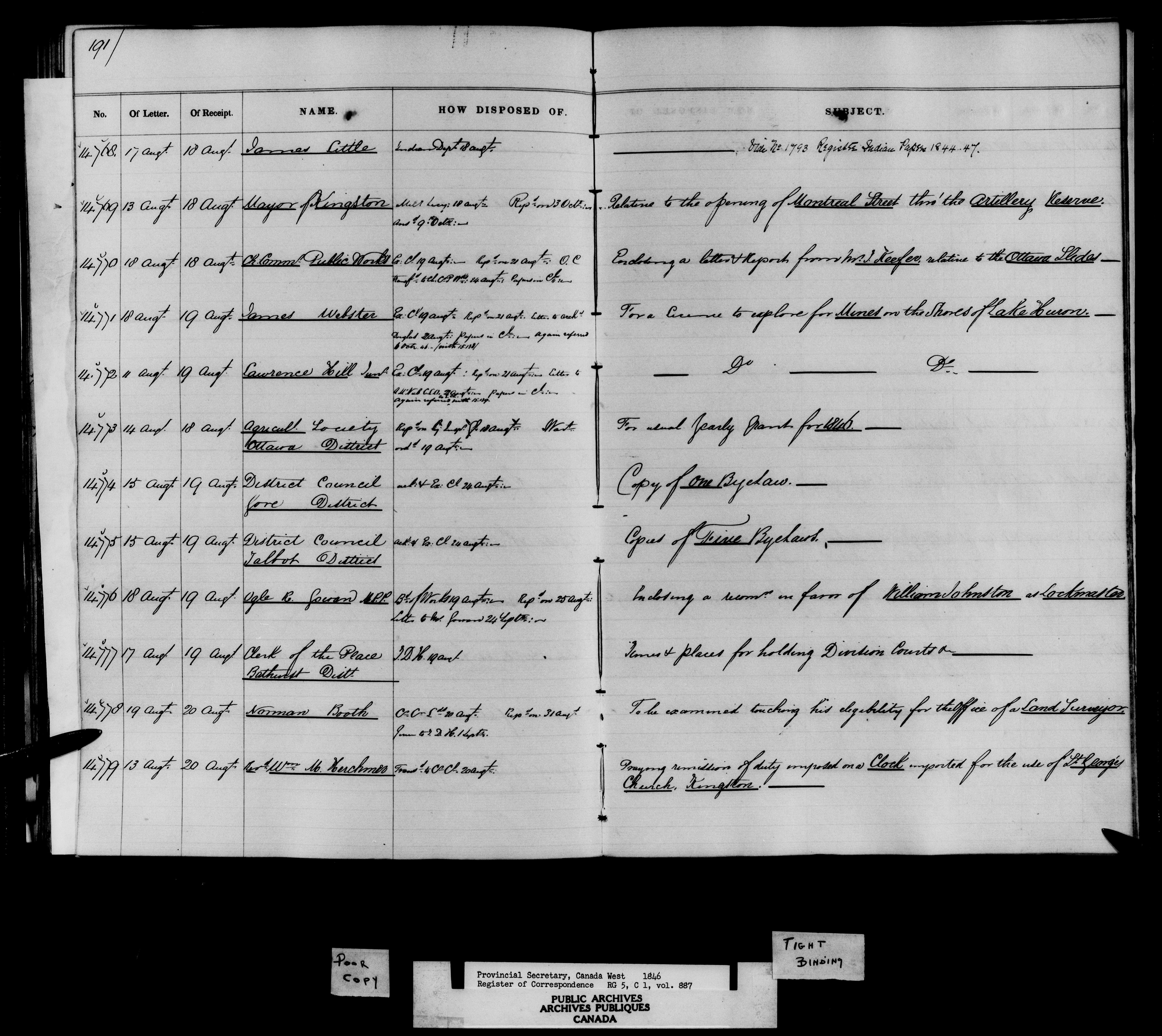 Registers and indexes to documents received by the Provincial Secretary for Canada West 1841-1867, together with some files of 1821-1841 - 10802