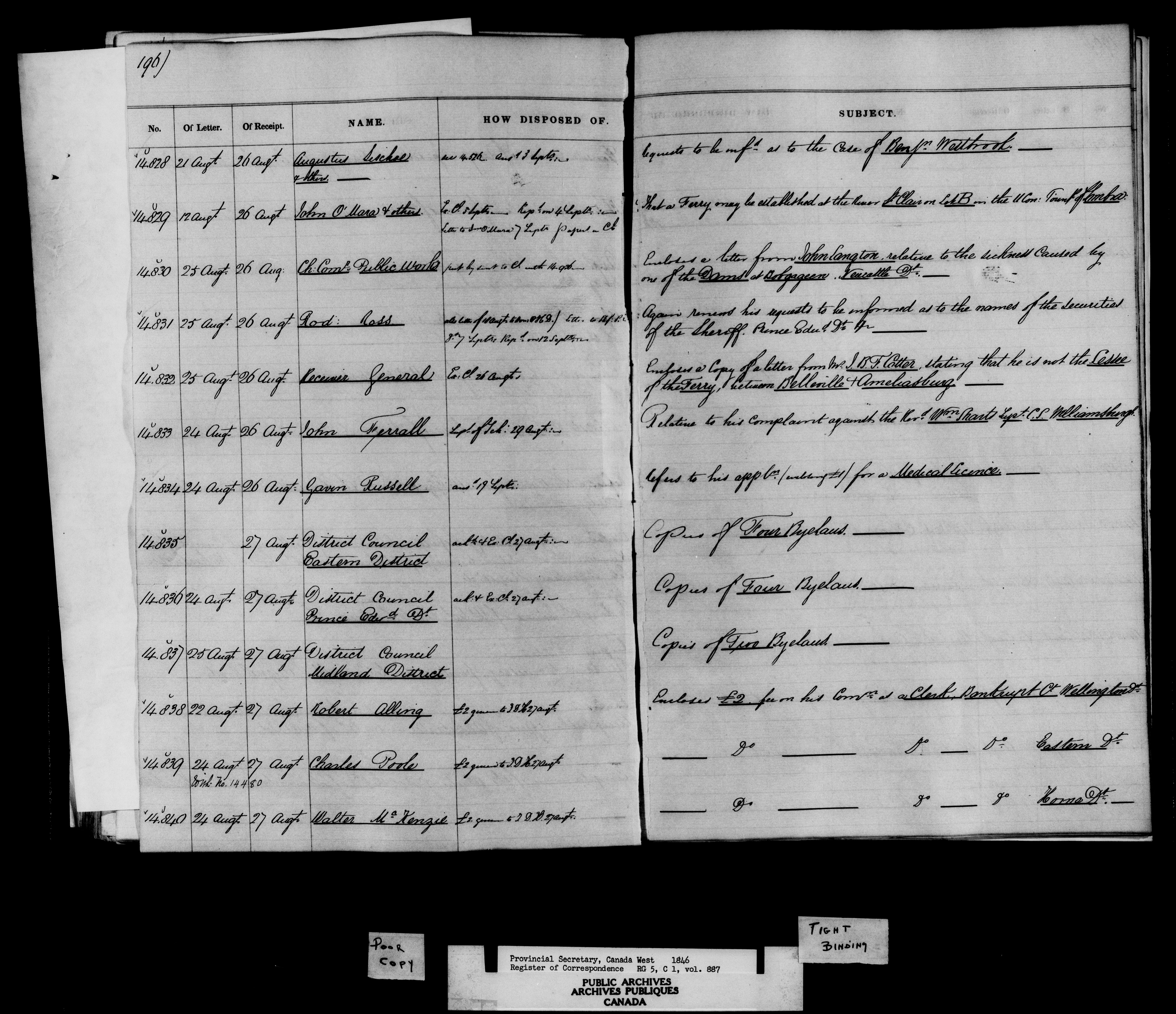 Registers and indexes to documents received by the Provincial Secretary for Canada West 1841-1867, together with some files of 1821-1841 - 10802