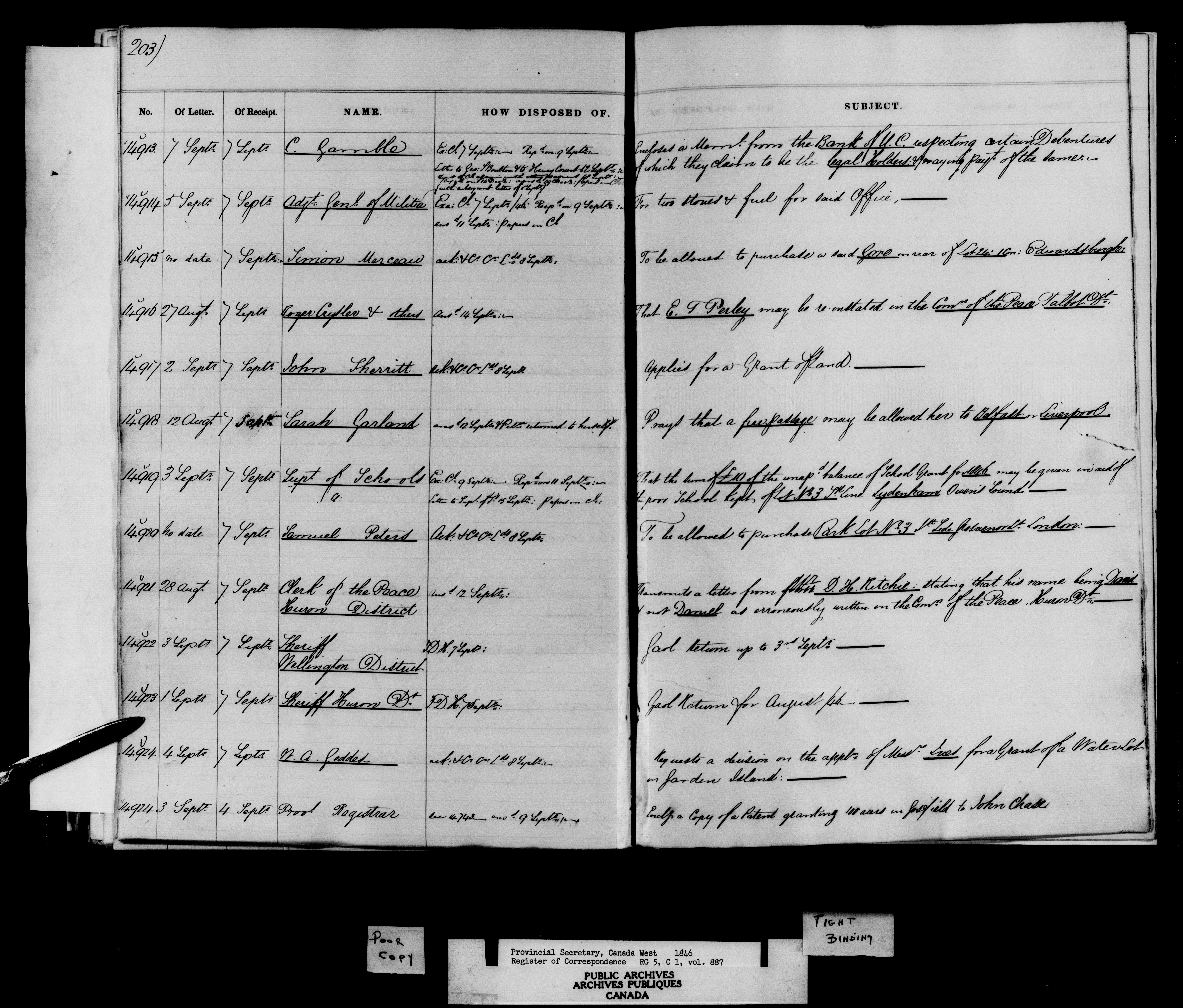 Canada West : Provincial Secretary, numbered correspondence files, 1844 to 1867 : C-10802
