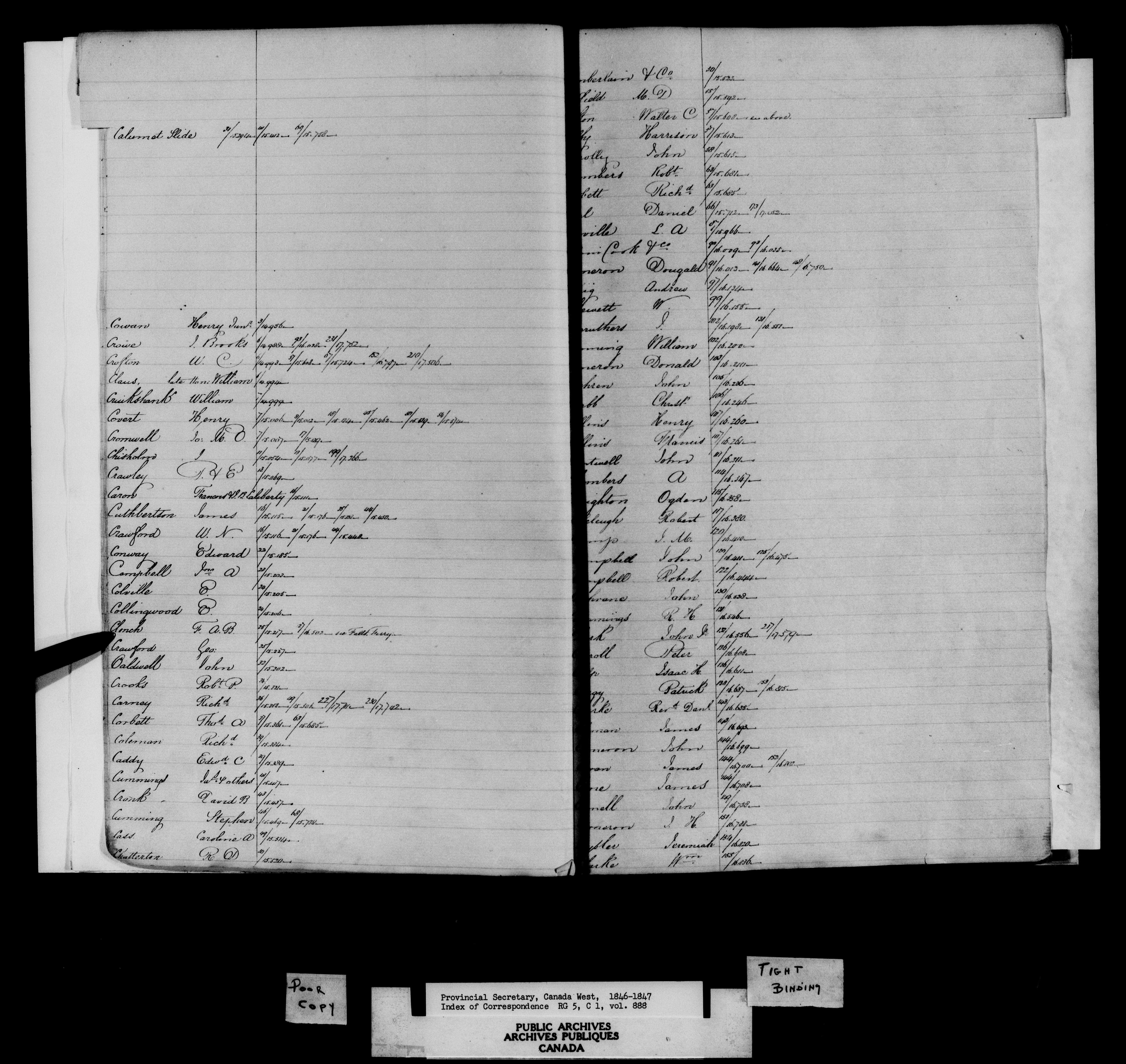 Canada West : Provincial Secretary, numbered correspondence files, 1844 to 1867 : C-10802