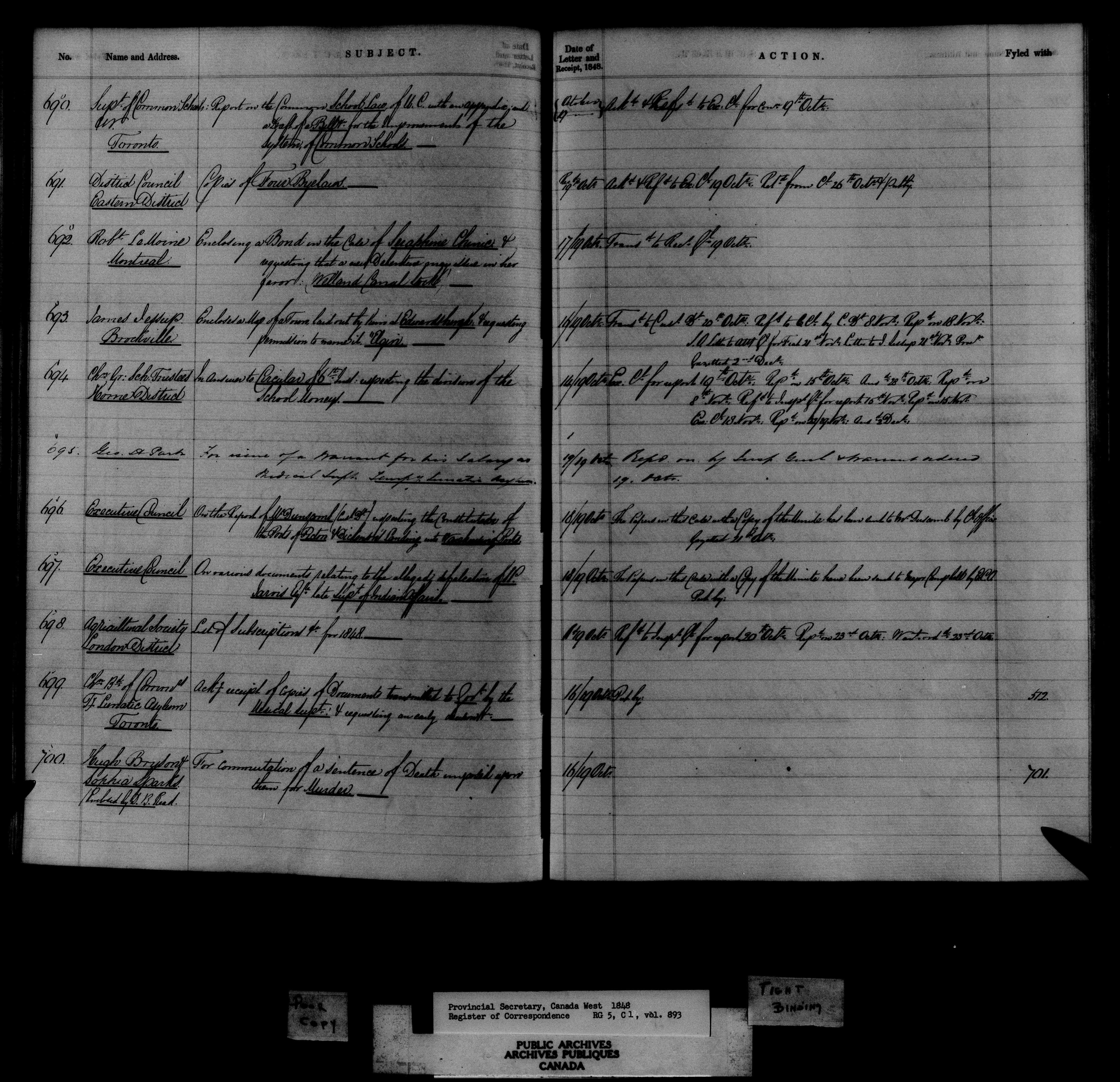 Registers and indexes to documents received by the Provincial Secretary for Canada West 1841-1867, together with some files of 1821-1841 - 10803