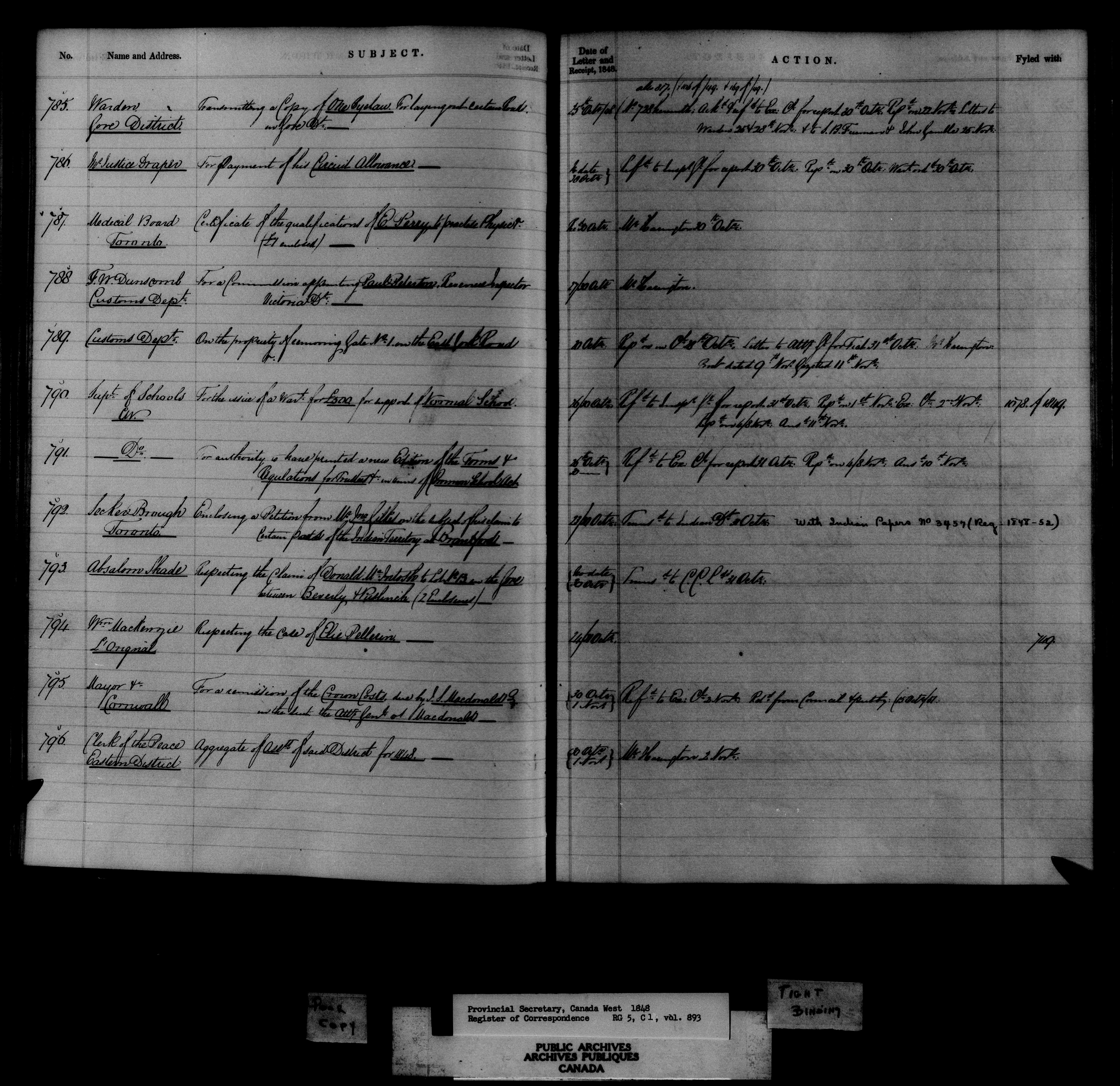 Registers and indexes to documents received by the Provincial Secretary for Canada West 1841-1867, together with some files of 1821-1841 - 10803