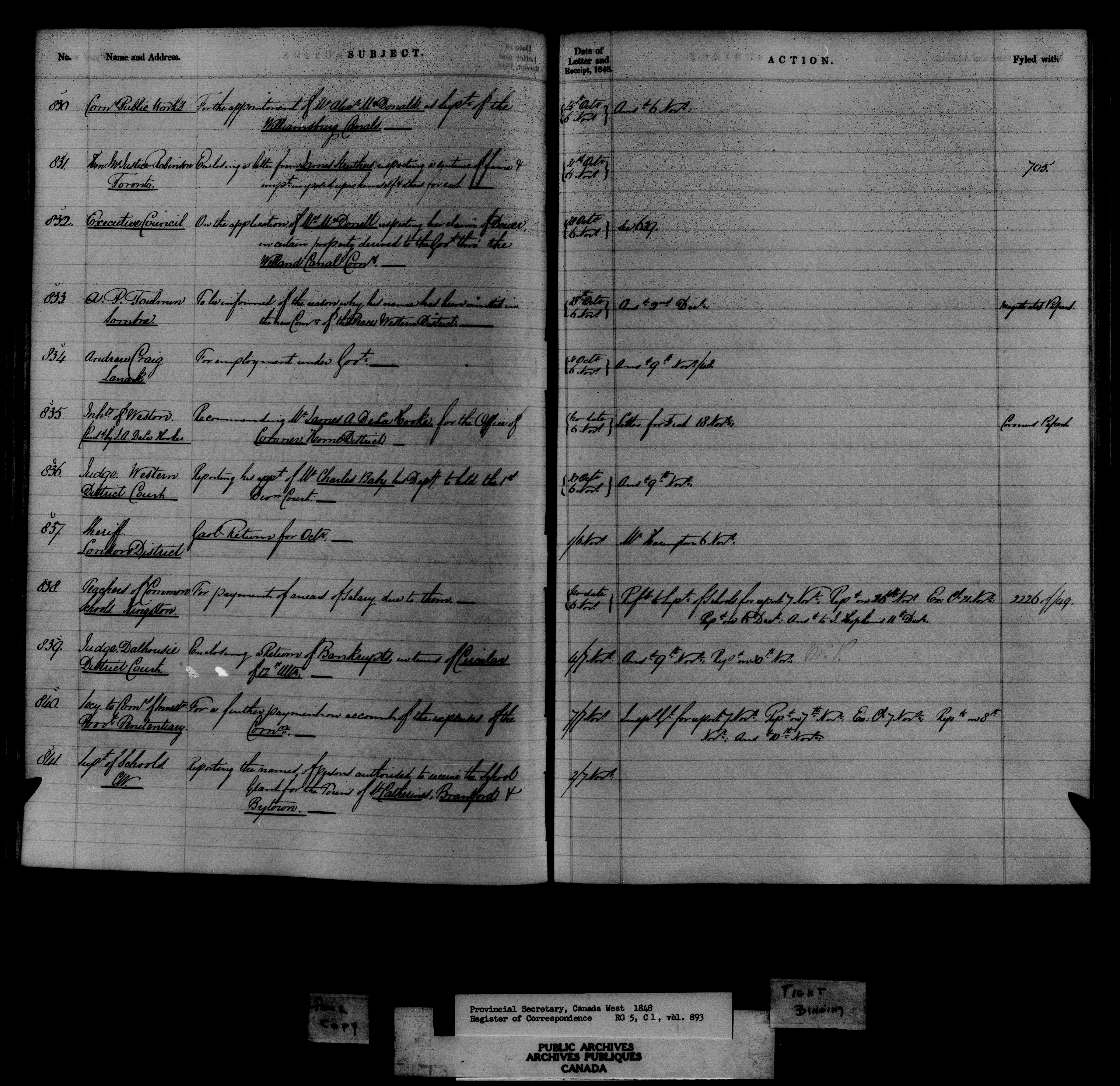 Registers and indexes to documents received by the Provincial Secretary for Canada West 1841-1867, together with some files of 1821-1841 - 10803