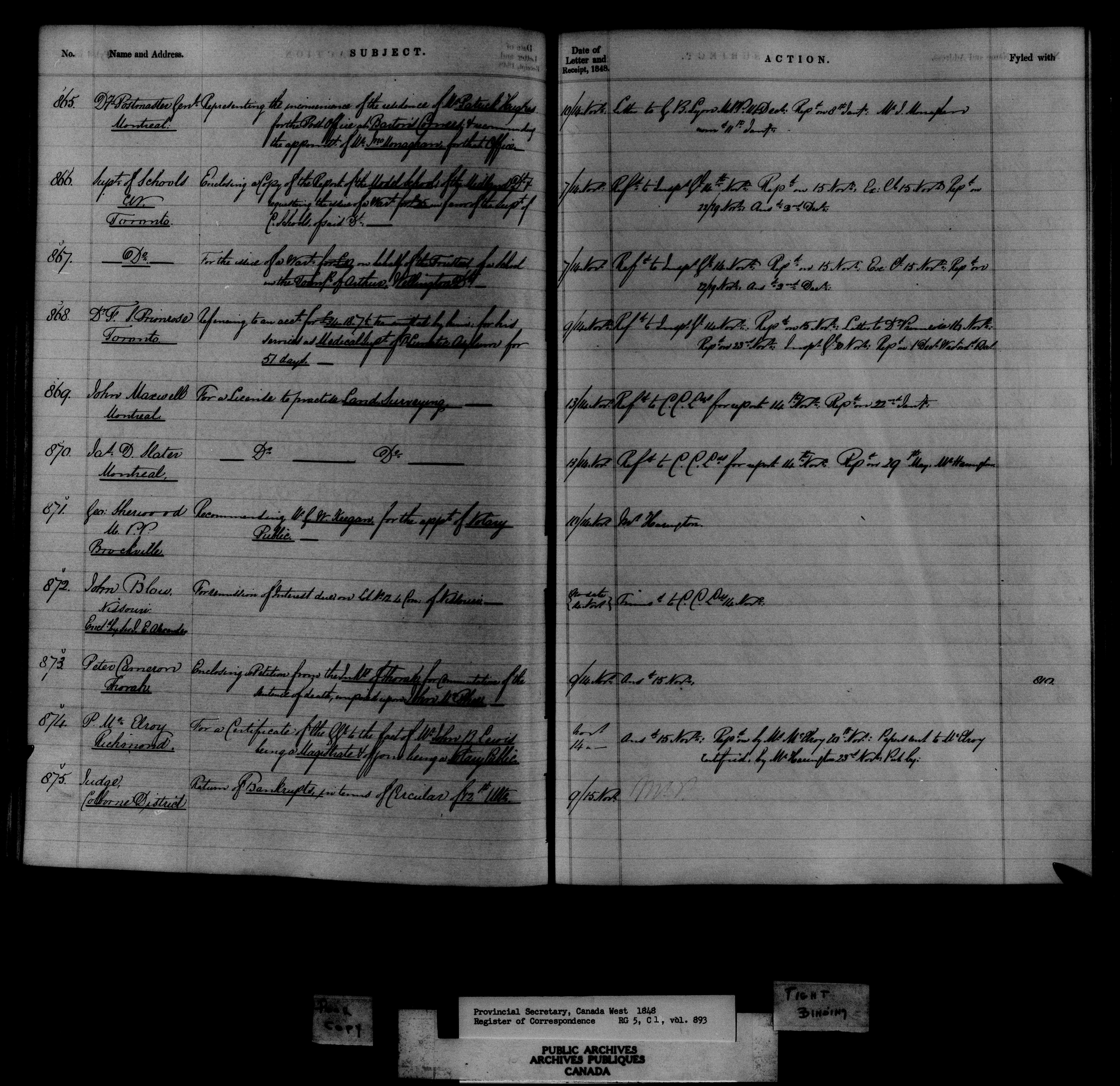 Registers and indexes to documents received by the Provincial Secretary for Canada West 1841-1867, together with some files of 1821-1841 - 10803