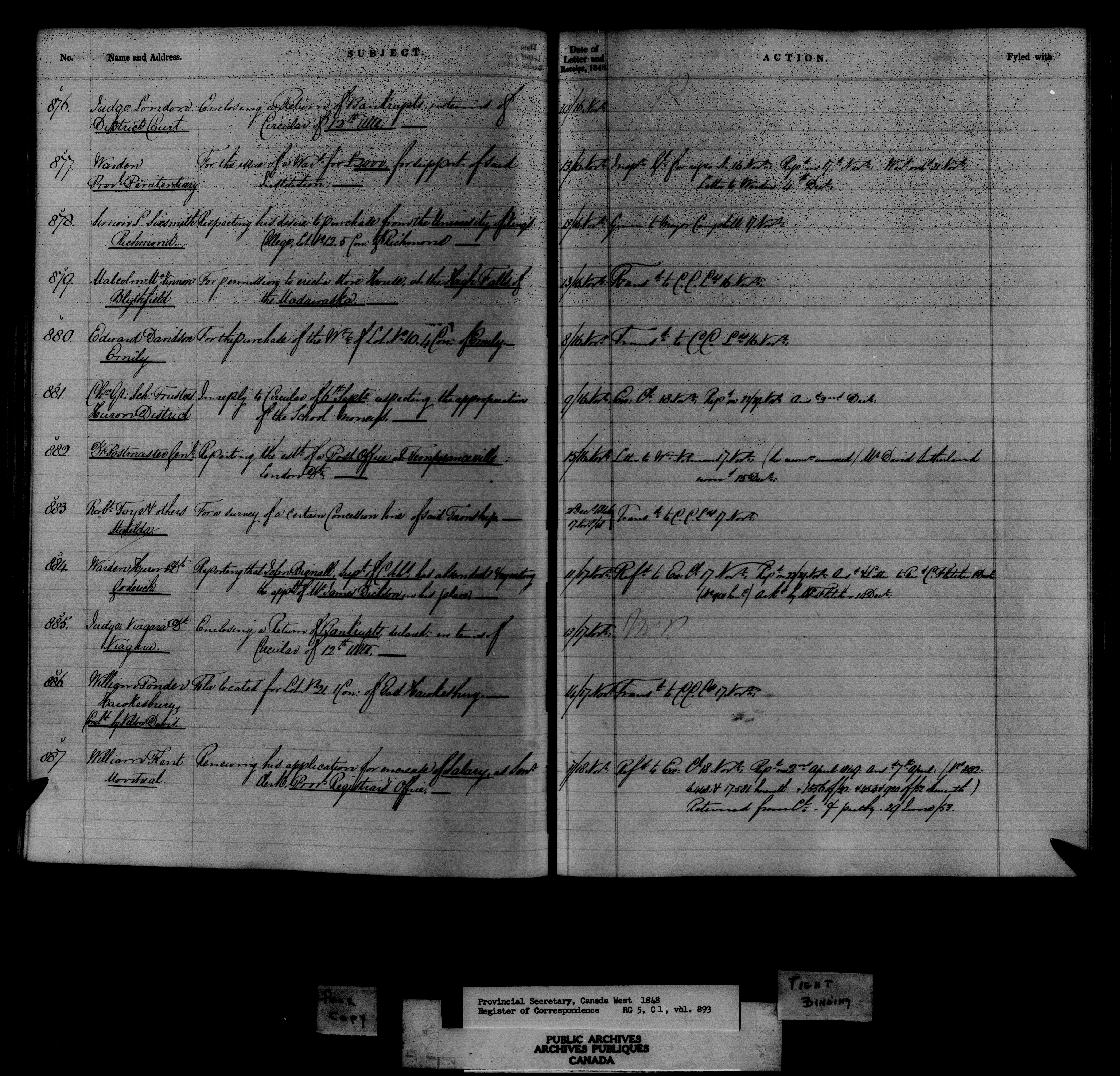 Registers and indexes to documents received by the Provincial Secretary for Canada West 1841-1867, together with some files of 1821-1841 - 10803