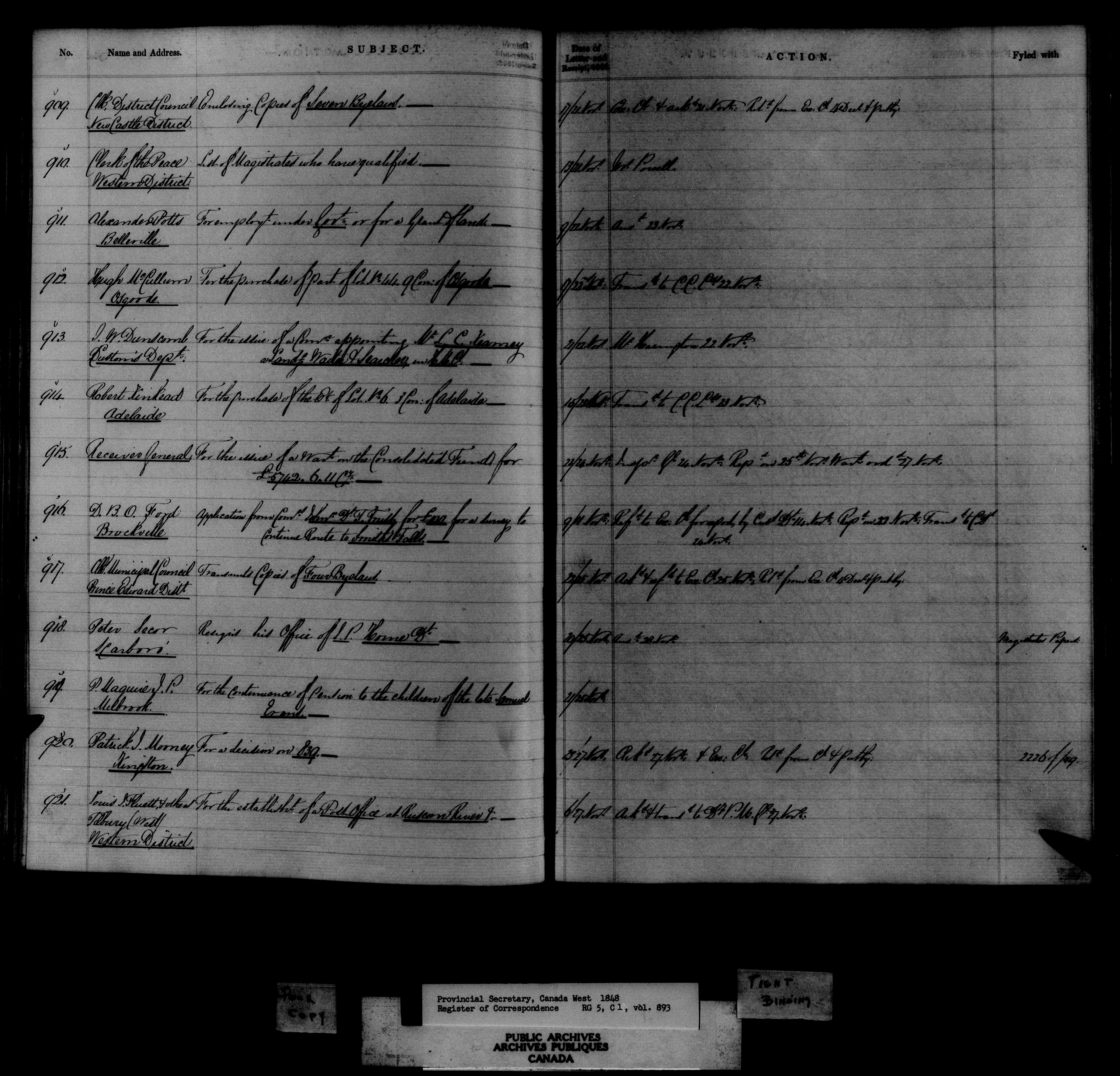 Registers and indexes to documents received by the Provincial Secretary for Canada West 1841-1867, together with some files of 1821-1841 - 10803