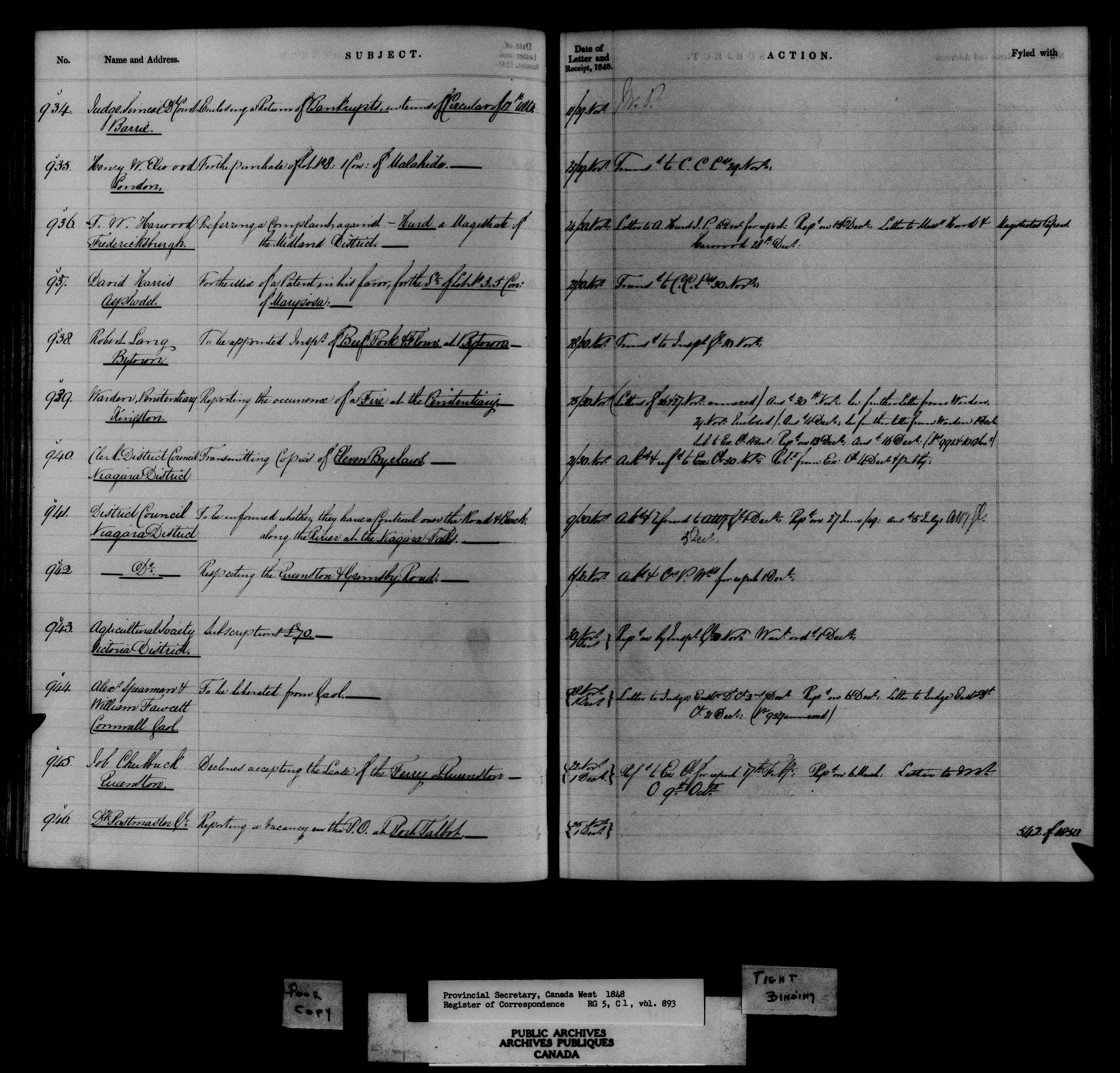 Registers and indexes to documents received by the Provincial Secretary for Canada West 1841-1867, together with some files of 1821-1841 - 10803