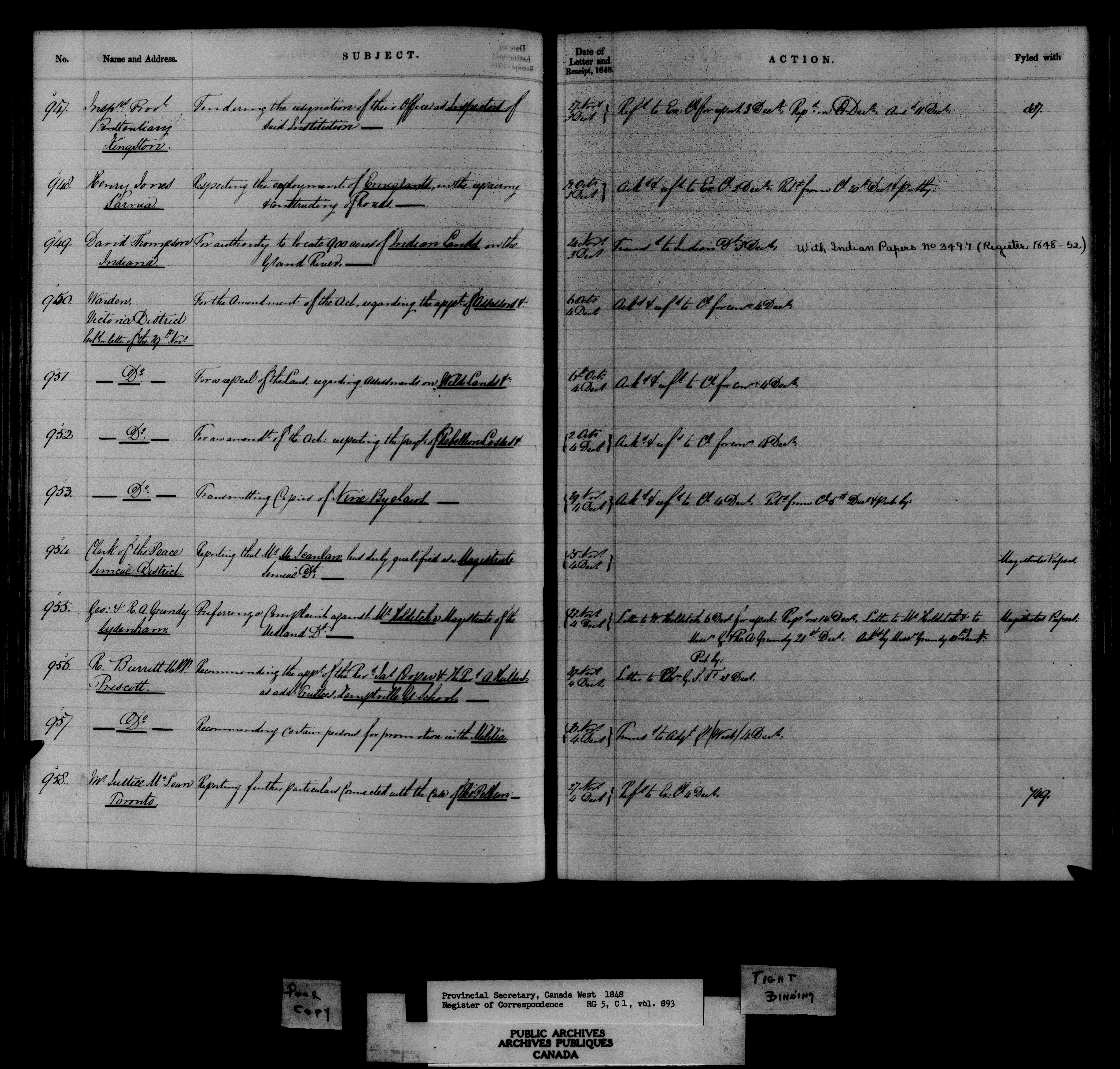 Registers and indexes to documents received by the Provincial Secretary for Canada West 1841-1867, together with some files of 1821-1841 - 10803