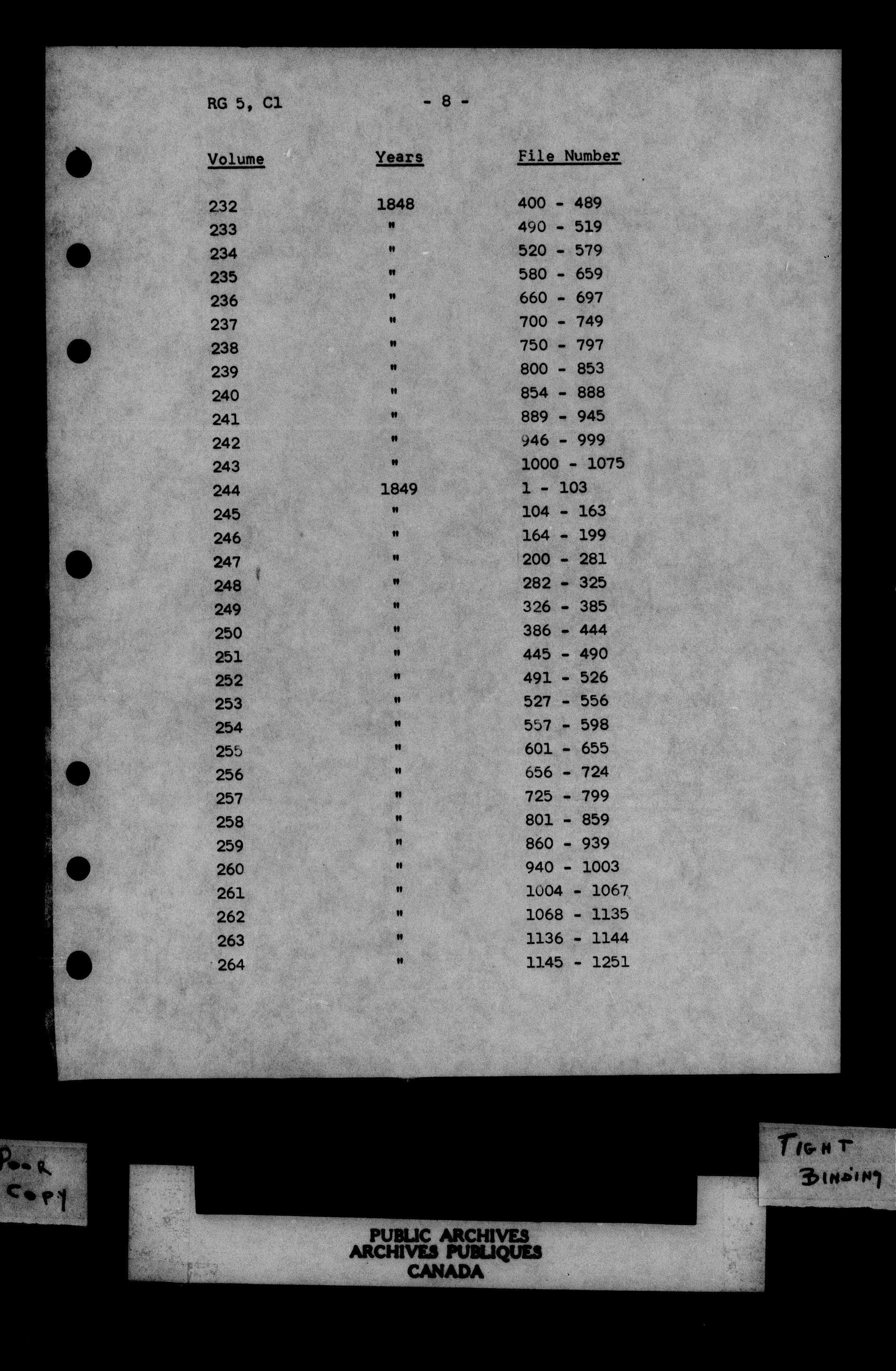 Registers and indexes to documents received by the Provincial Secretary for Canada West 1841-1867, together with some files of 1821-1841 - 10805