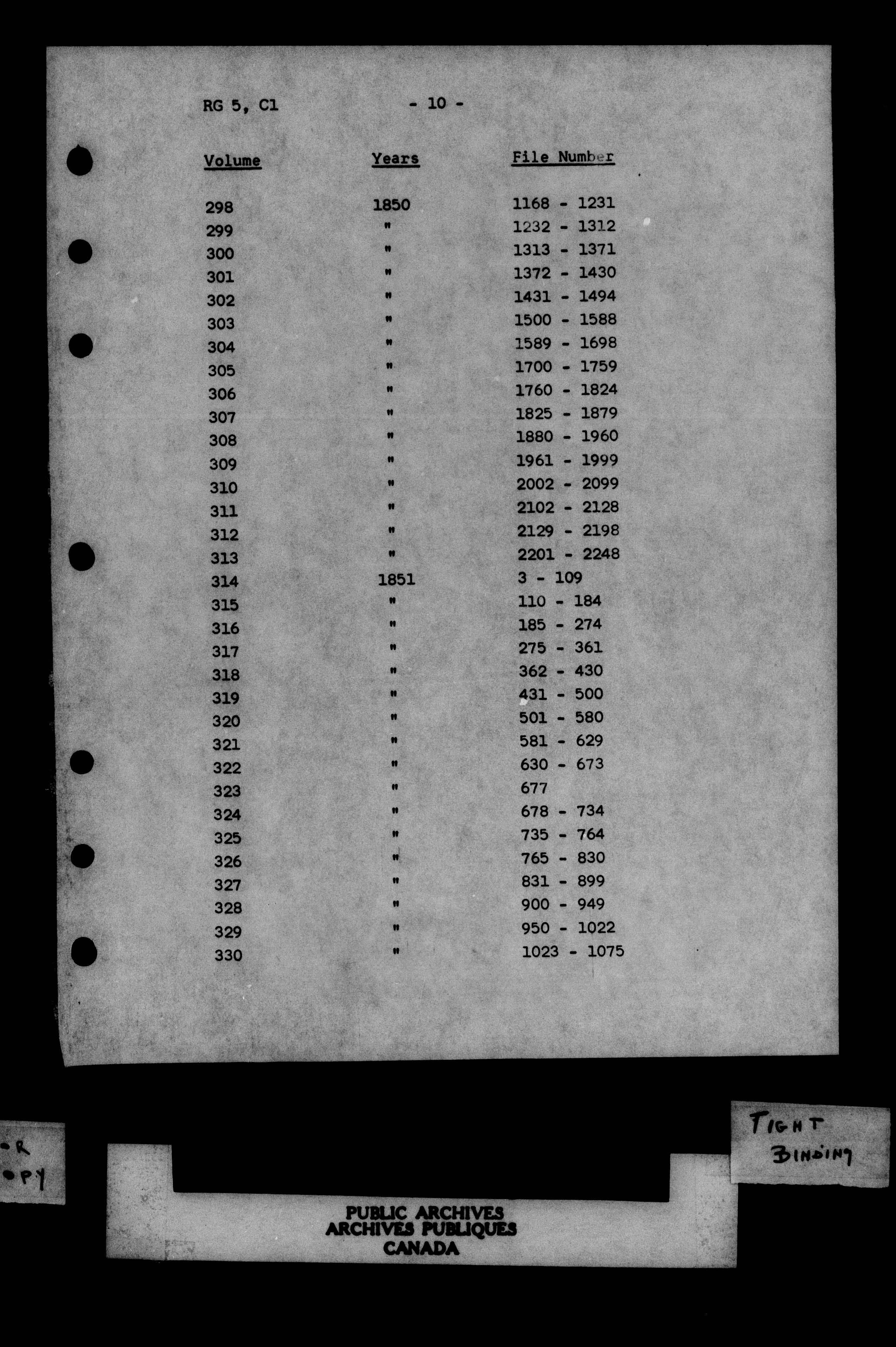 Registers and indexes to documents received by the Provincial Secretary for Canada West 1841-1867, together with some files of 1821-1841 - 10805