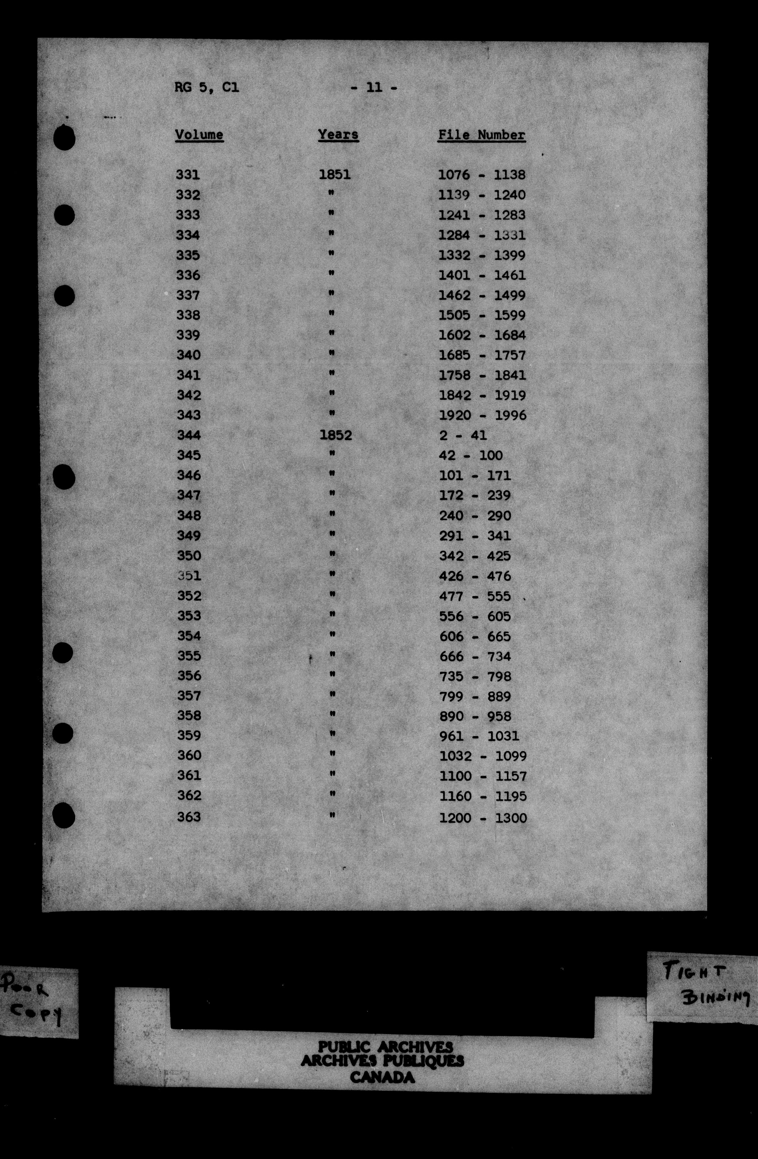 Registers and indexes to documents received by the Provincial Secretary for Canada West 1841-1867, together with some files of 1821-1841 - 10805