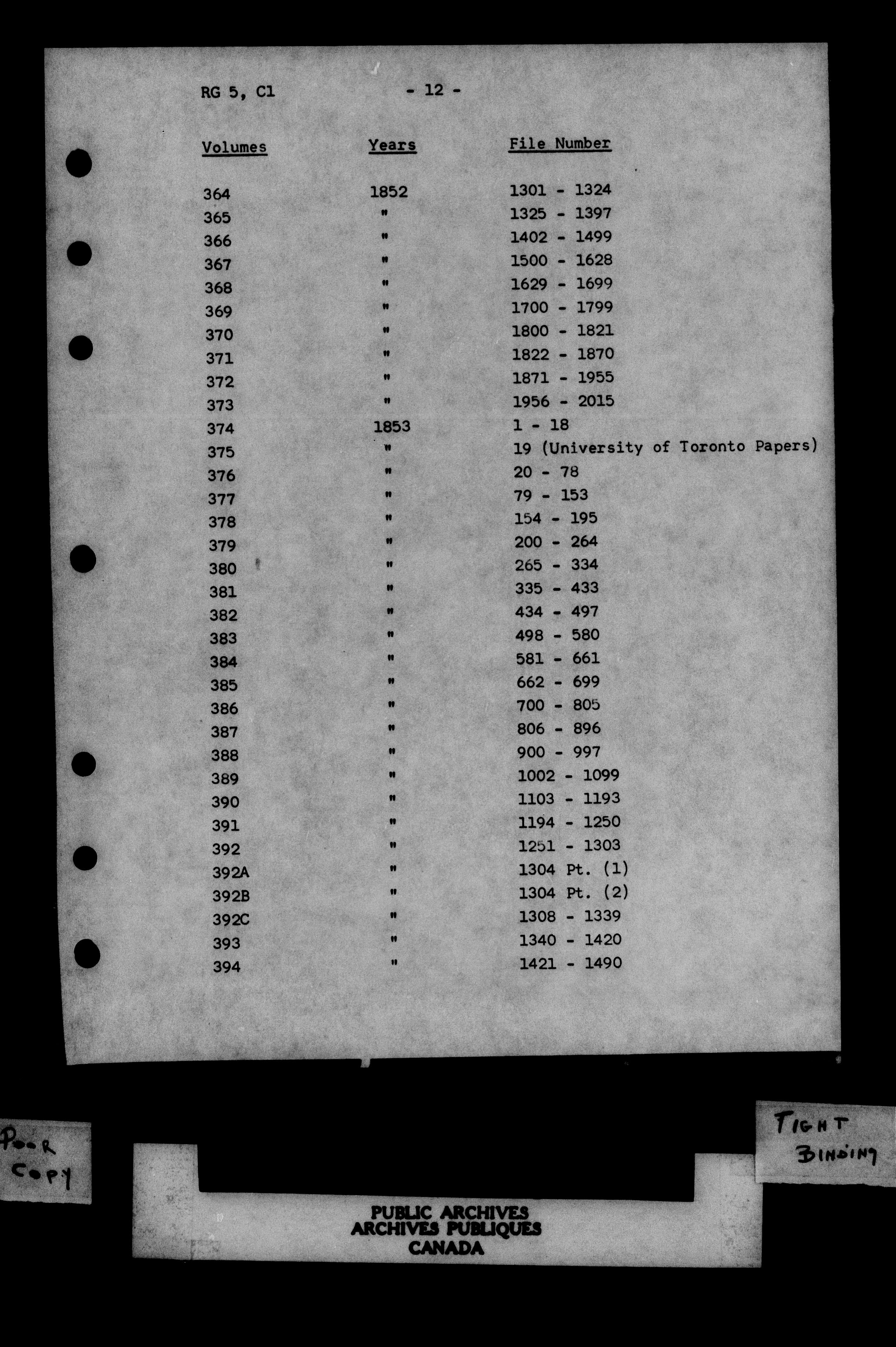 Registers and indexes to documents received by the Provincial Secretary for Canada West 1841-1867, together with some files of 1821-1841 - 10805
