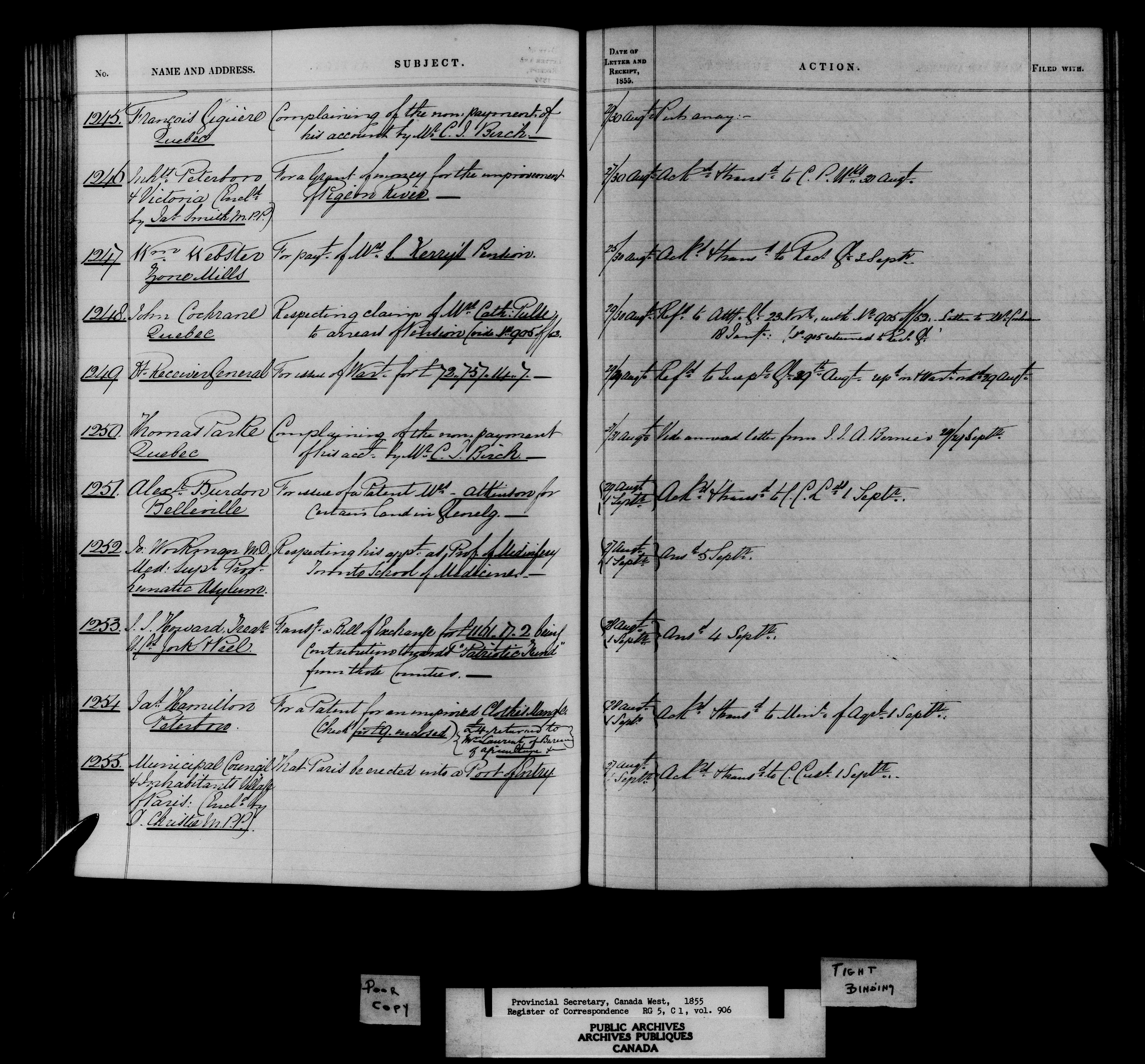 Registers and indexes to documents received by the Provincial Secretary for Canada West 1841-1867, together with some files of 1821-1841 - 10805