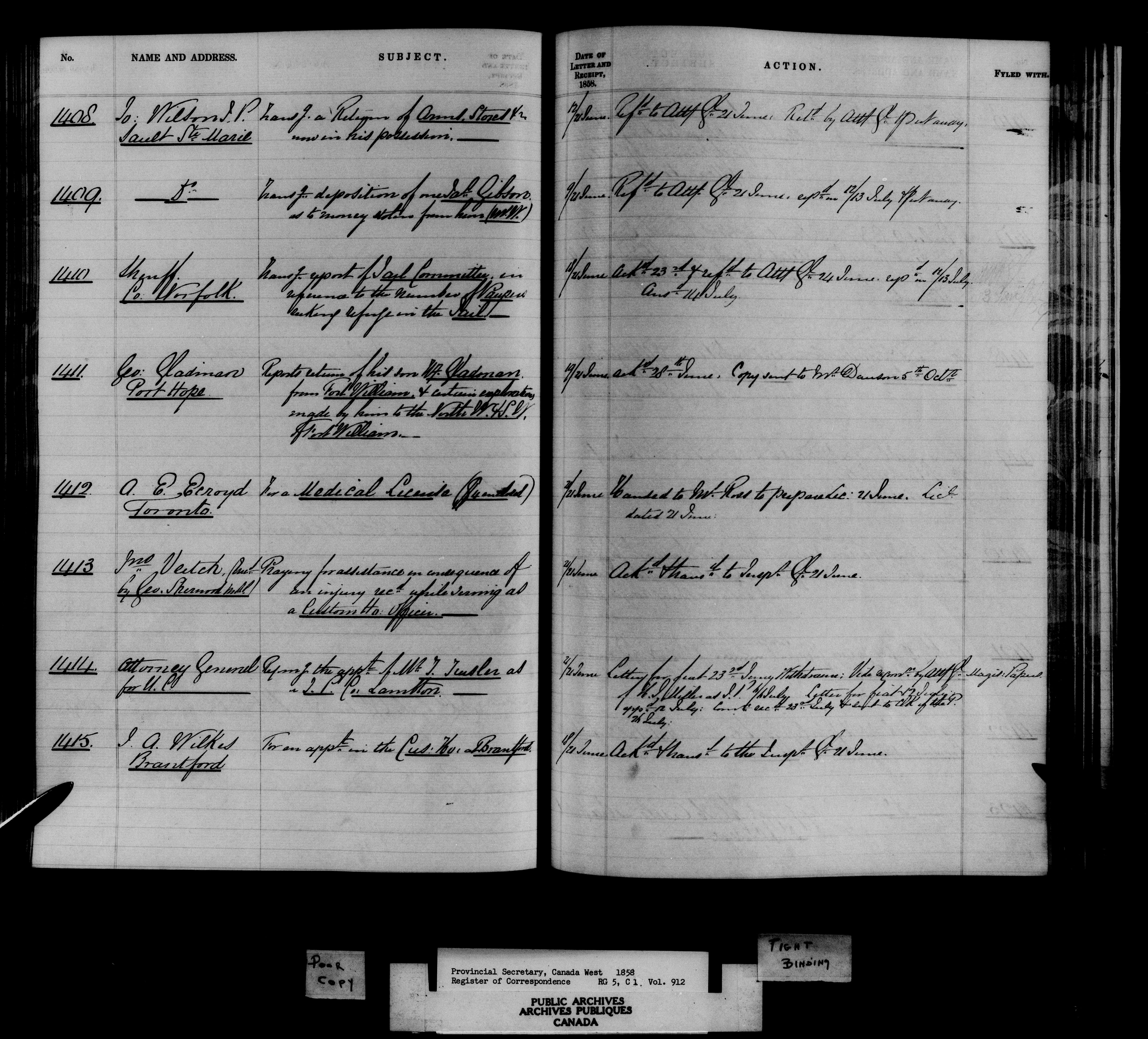 Registers and indexes to documents received by the Provincial Secretary for Canada West 1841-1867, together with some files of 1821-1841 - 10806