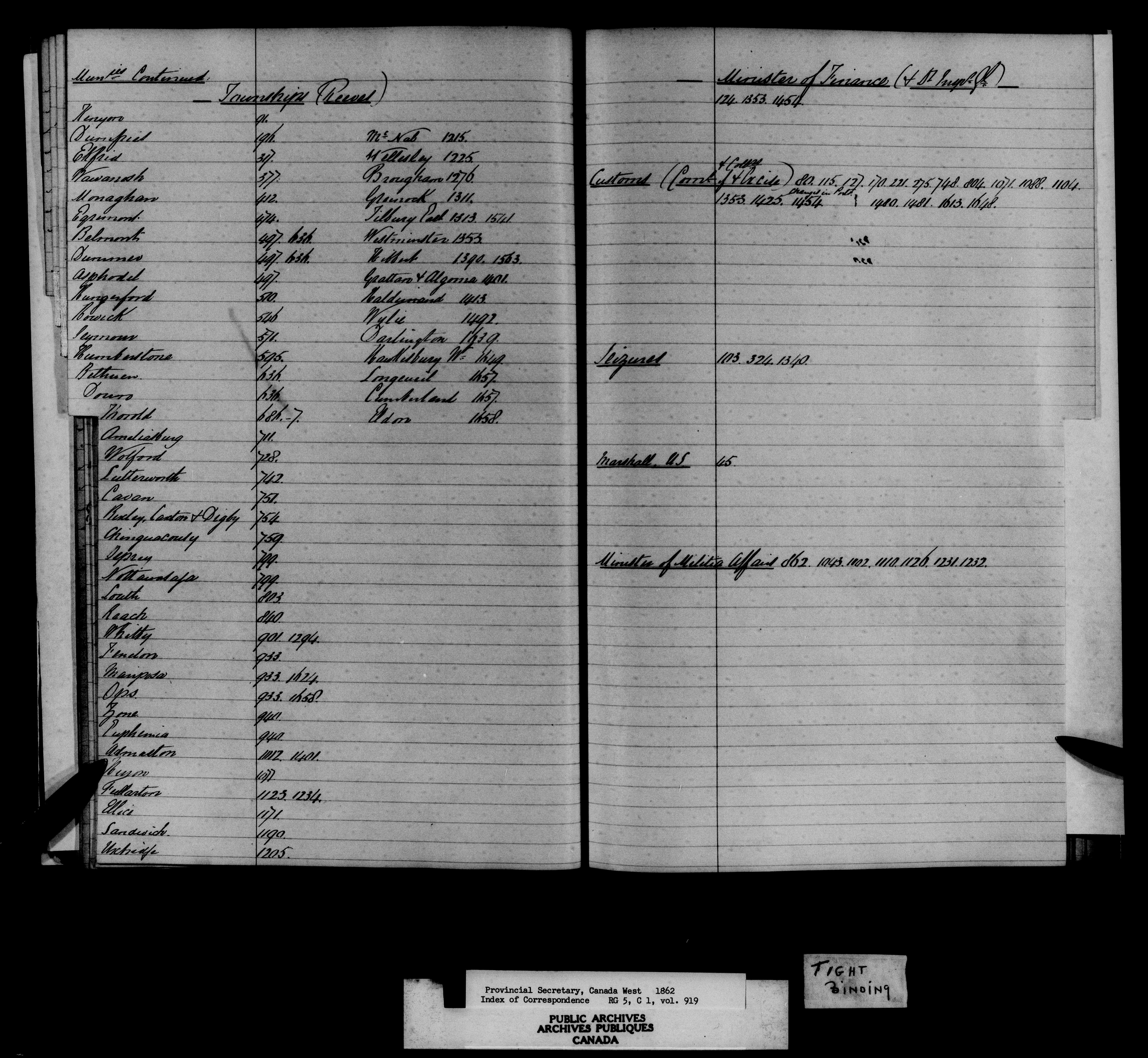 Registers and indexes to documents received by the Provincial Secretary for Canada West 1841-1867, together with some files of 1821-1841 - 10807