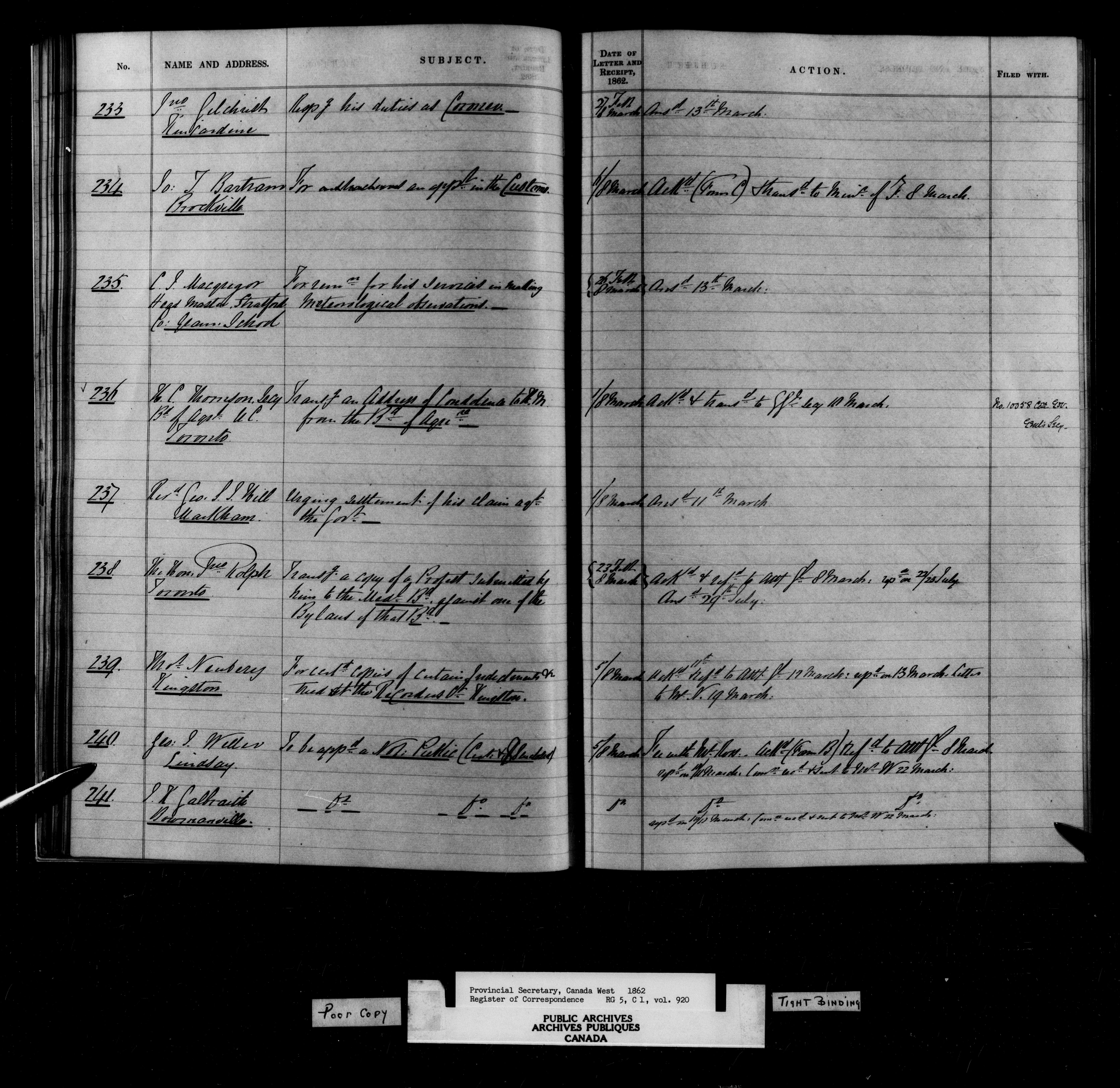 Registers and indexes to documents received by the Provincial Secretary for Canada West 1841-1867, together with some files of 1821-1841 - 10808