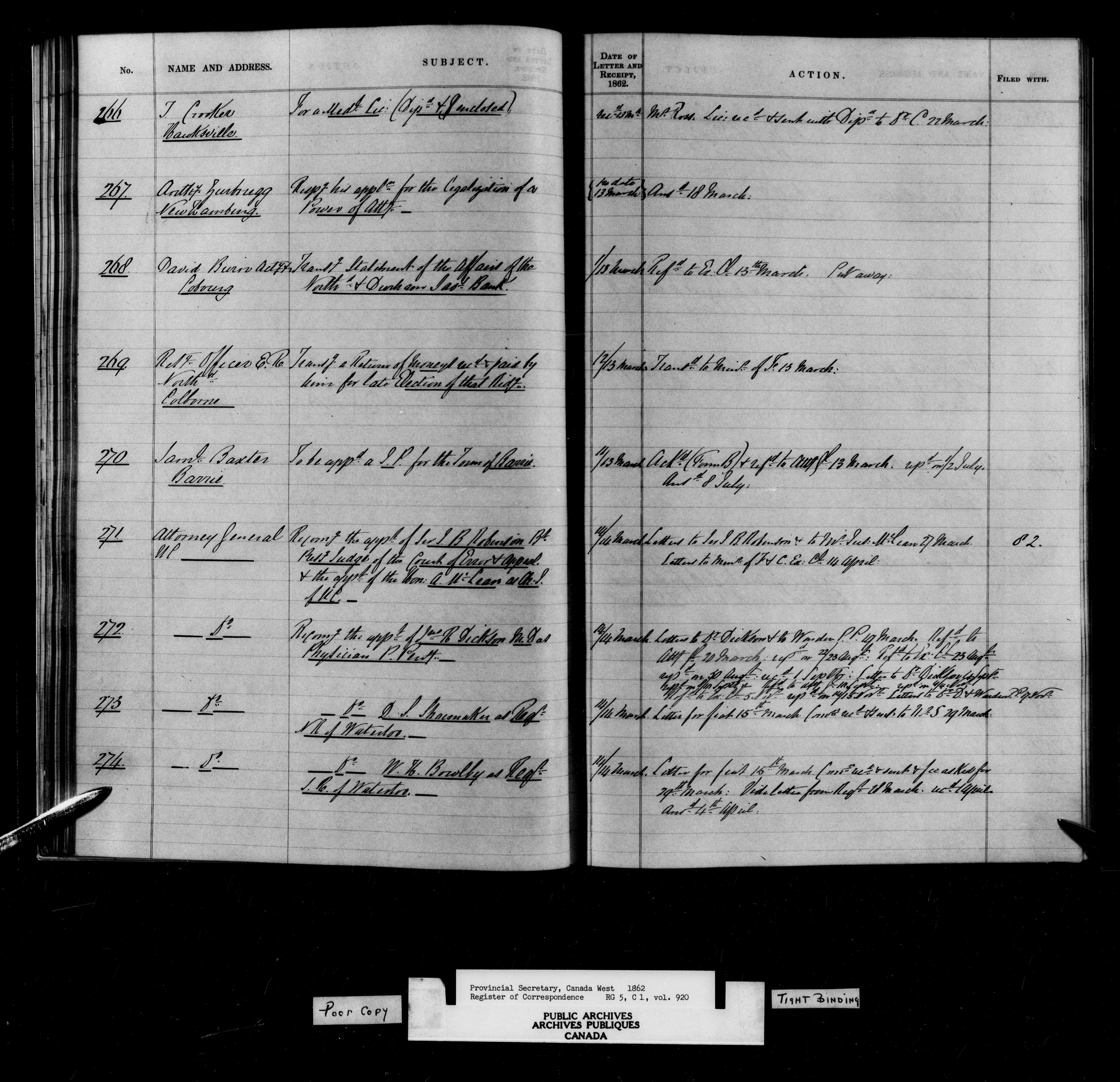 Registers and indexes to documents received by the Provincial Secretary for Canada West 1841-1867, together with some files of 1821-1841 - 10808