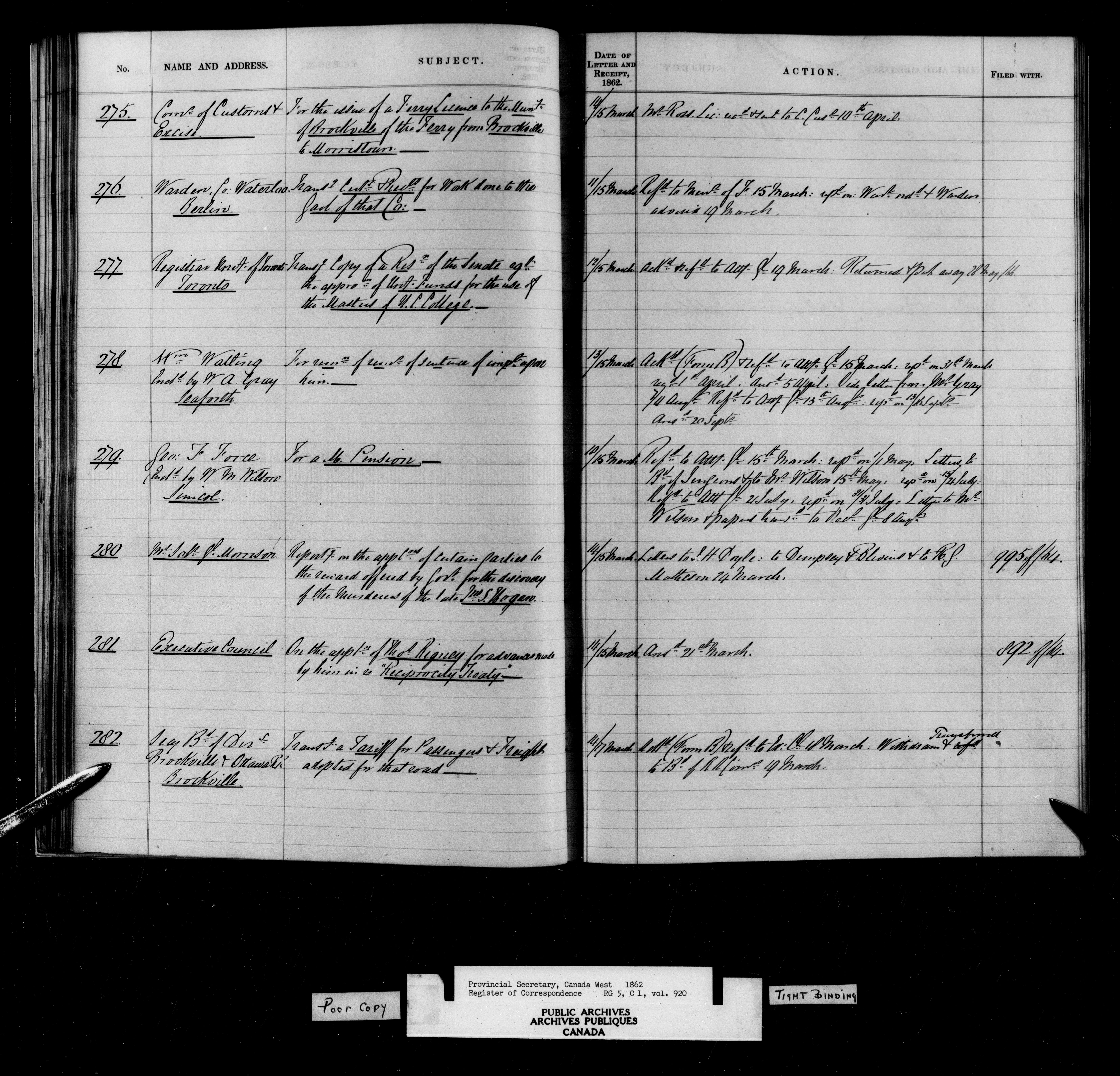 Registers and indexes to documents received by the Provincial Secretary for Canada West 1841-1867, together with some files of 1821-1841 - 10808