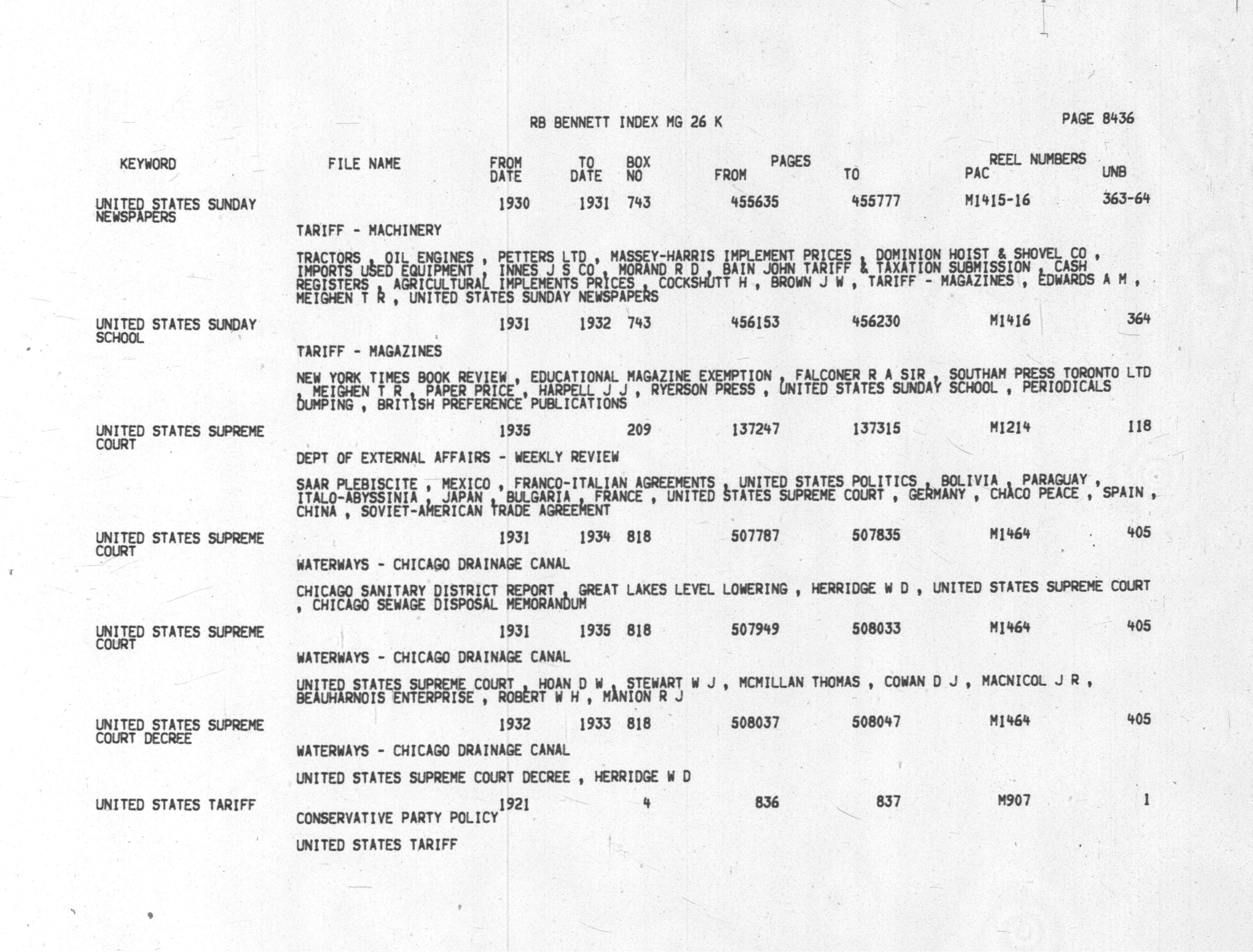 Richard Bedford Bennett : Finding aid 434 - 10858