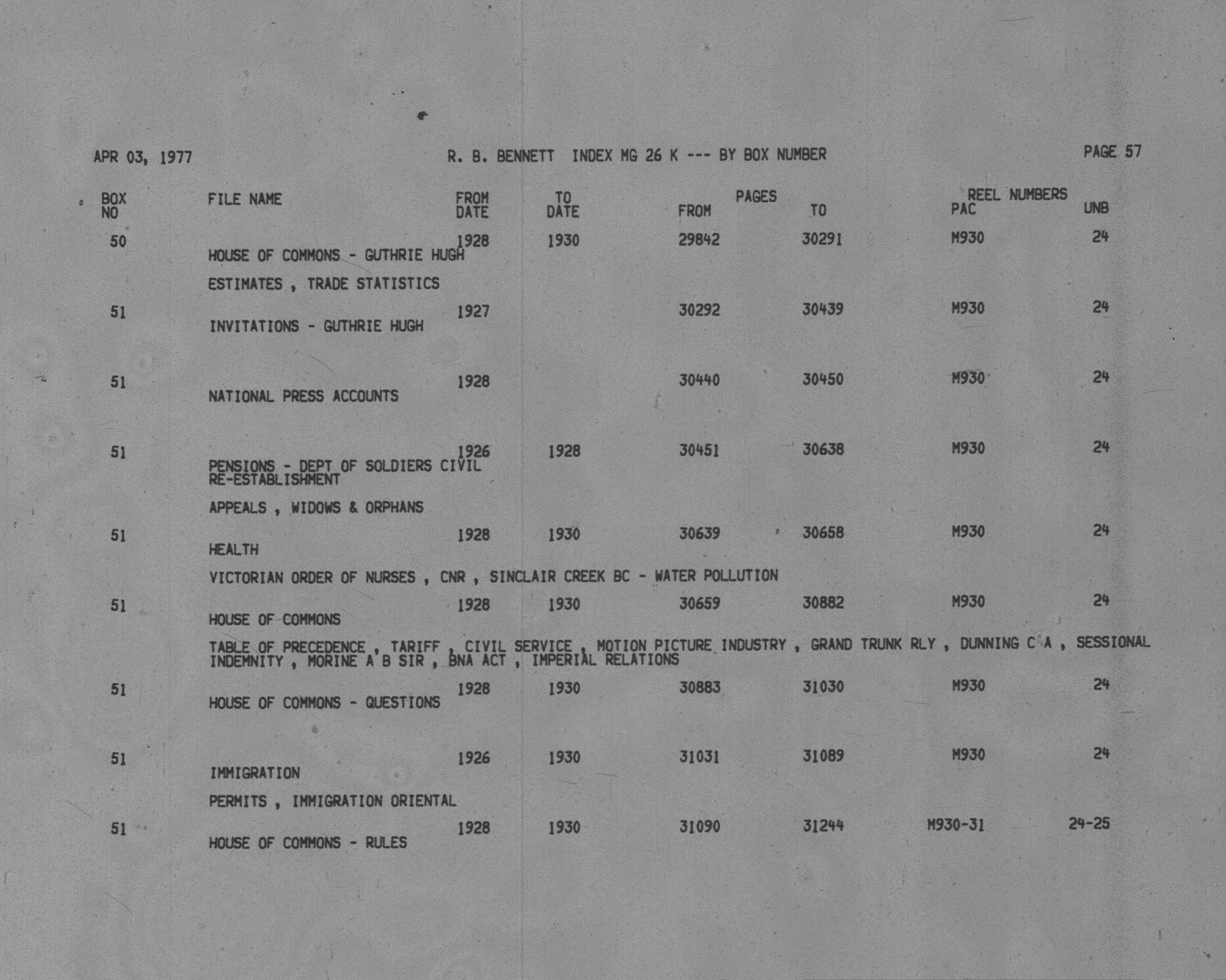 Richard Bedford Bennett : Finding aid 434 - 10859