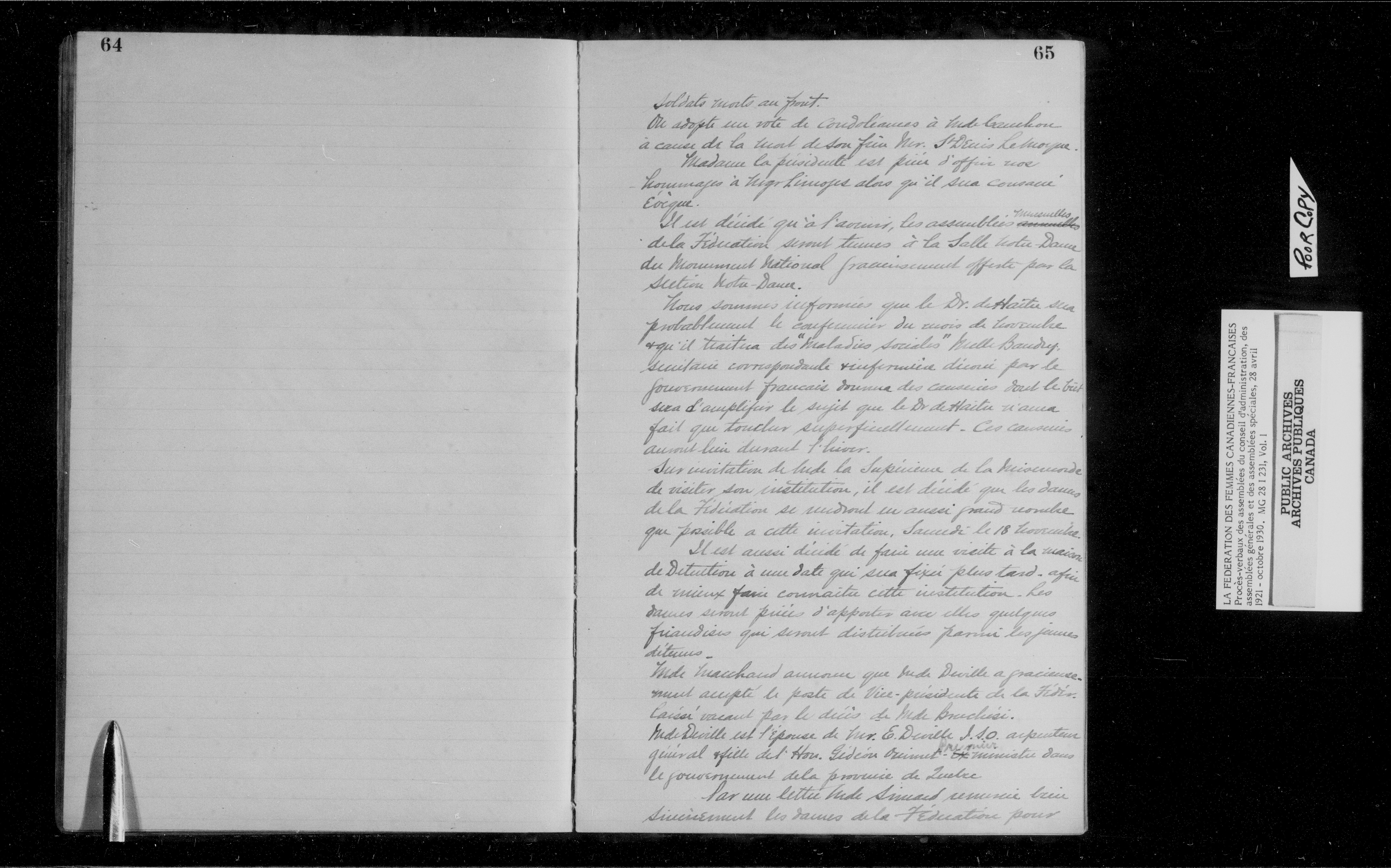 Fonds de la Fédération nationale des femmes canadiennes-françaises : dossiers administratifs et financiers : C-10865