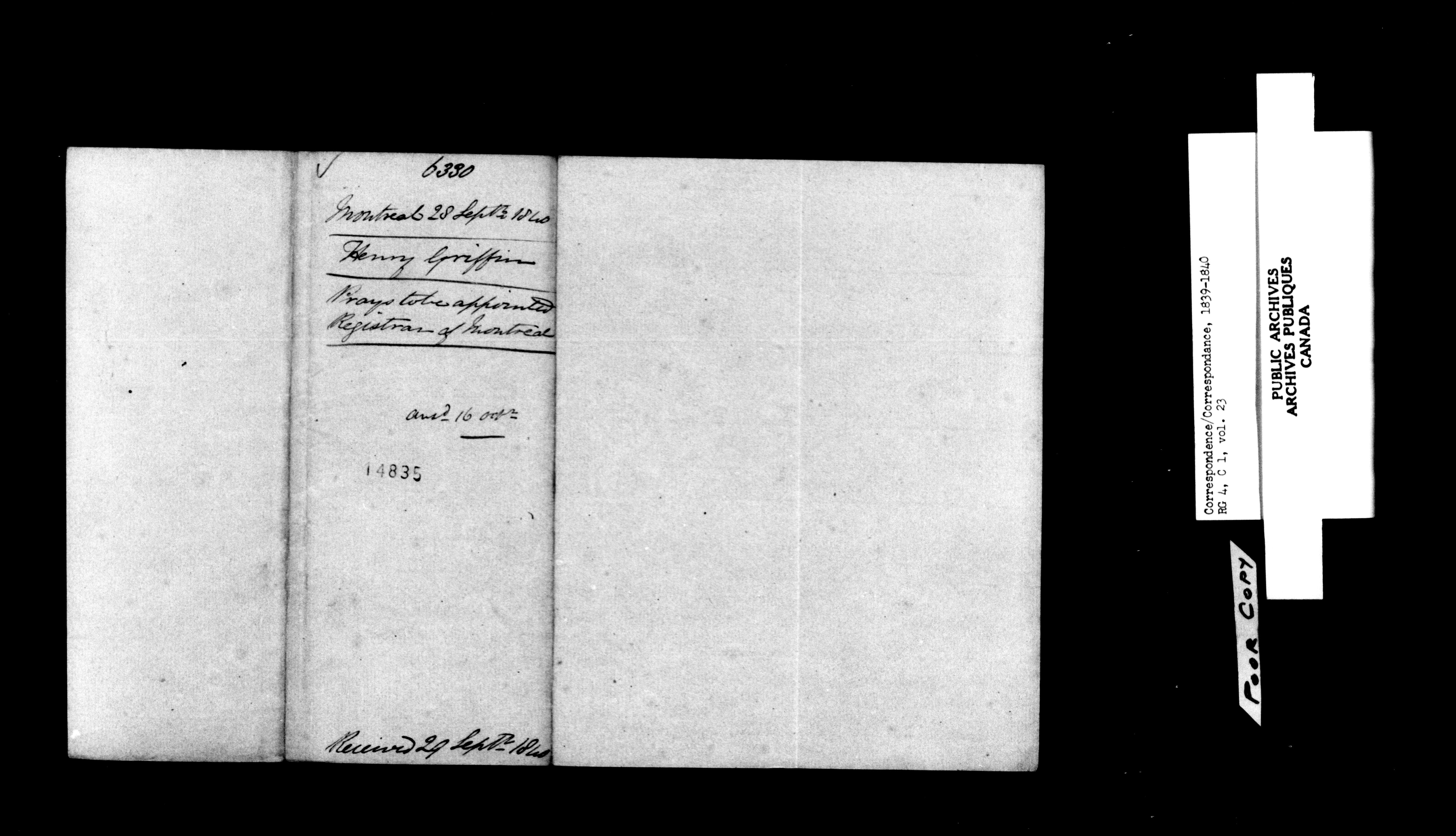 Provincial Secretary, Canada East : Numbered Correspondence Files, 1839-1867 - 10872