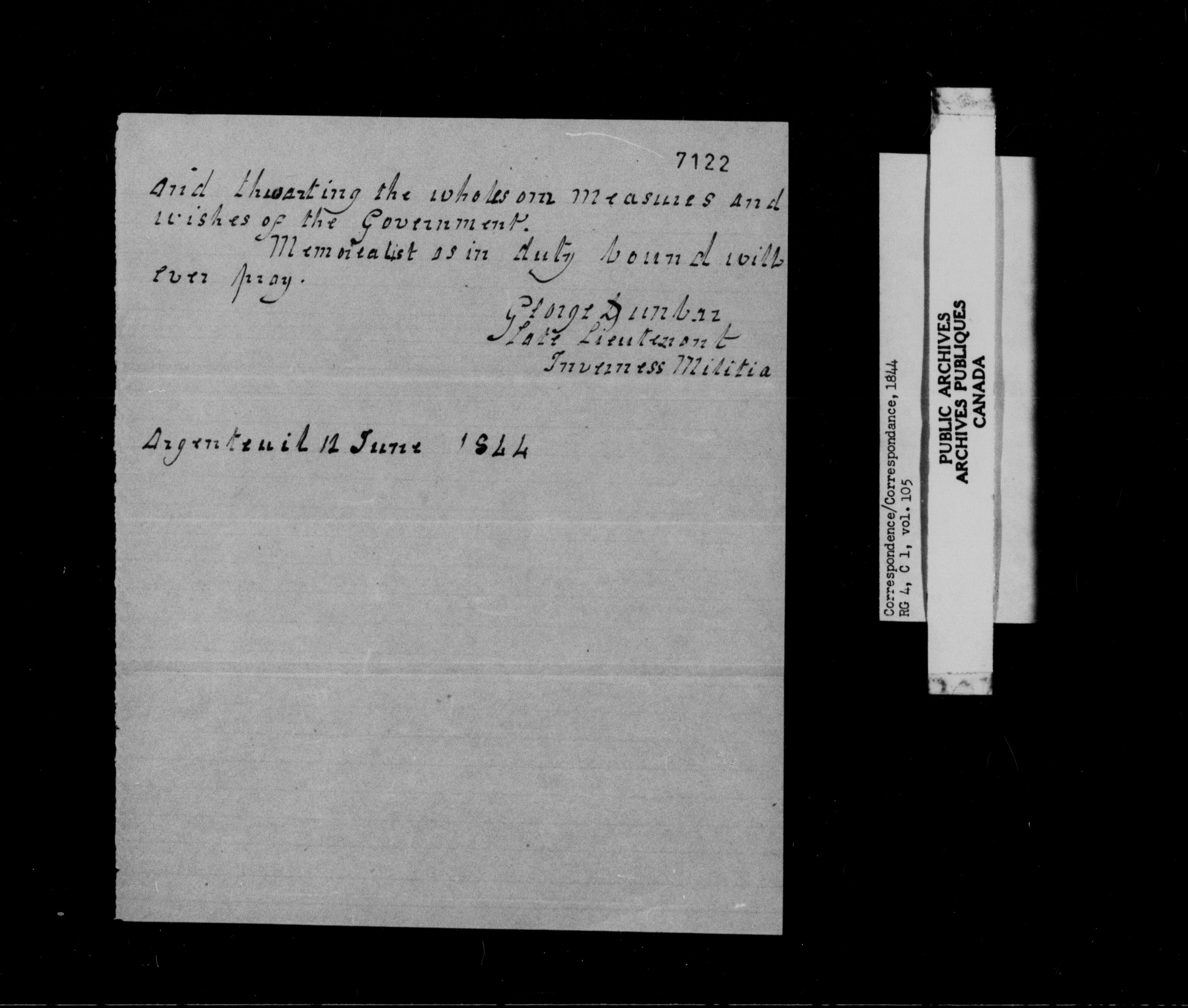 Canada East : Provincial Secretary numbered correspondence files, 1839-1867 : C-10876
