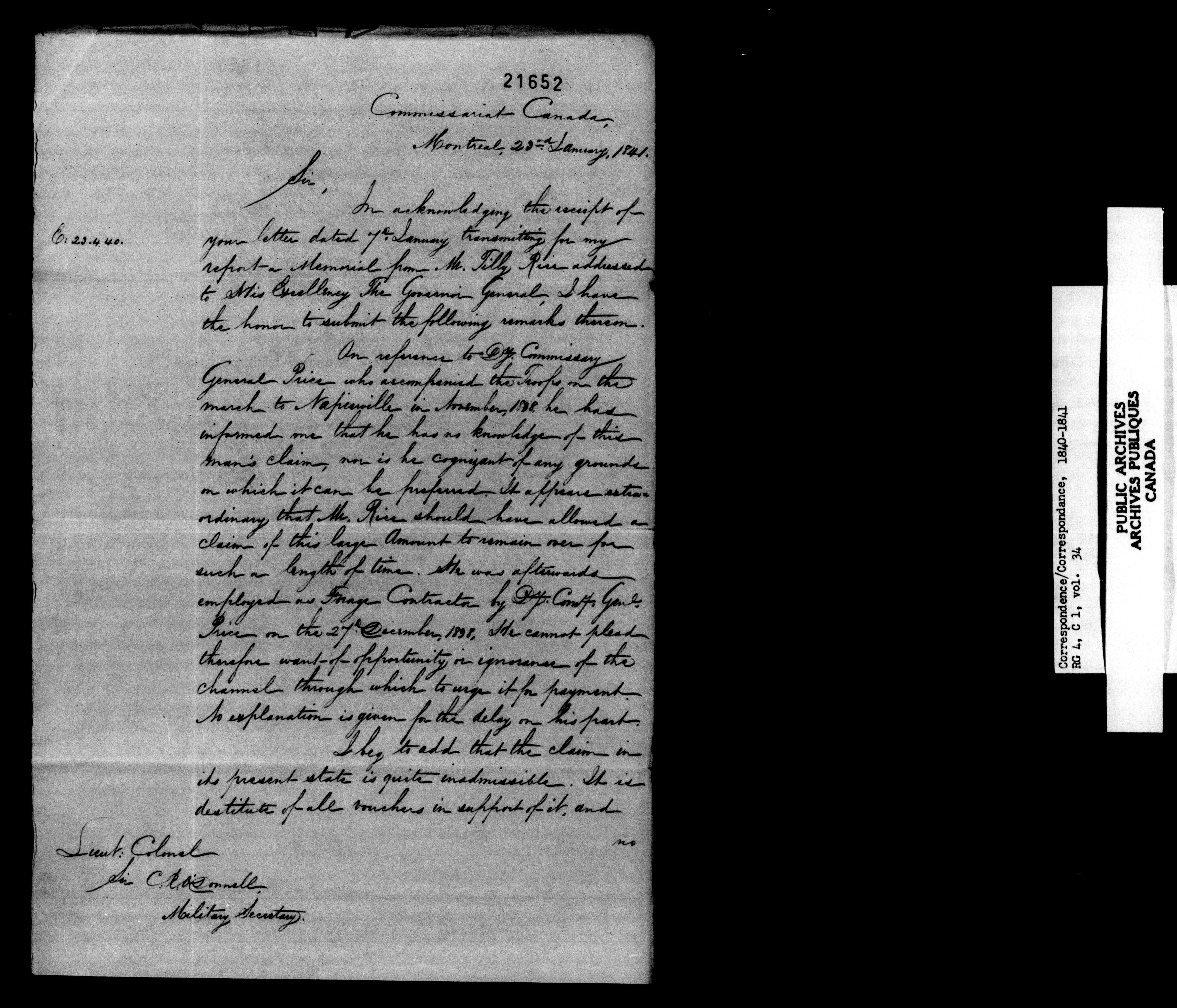 Canada East : Provincial Secretary numbered correspondence files, 1839-1867 : C-10878