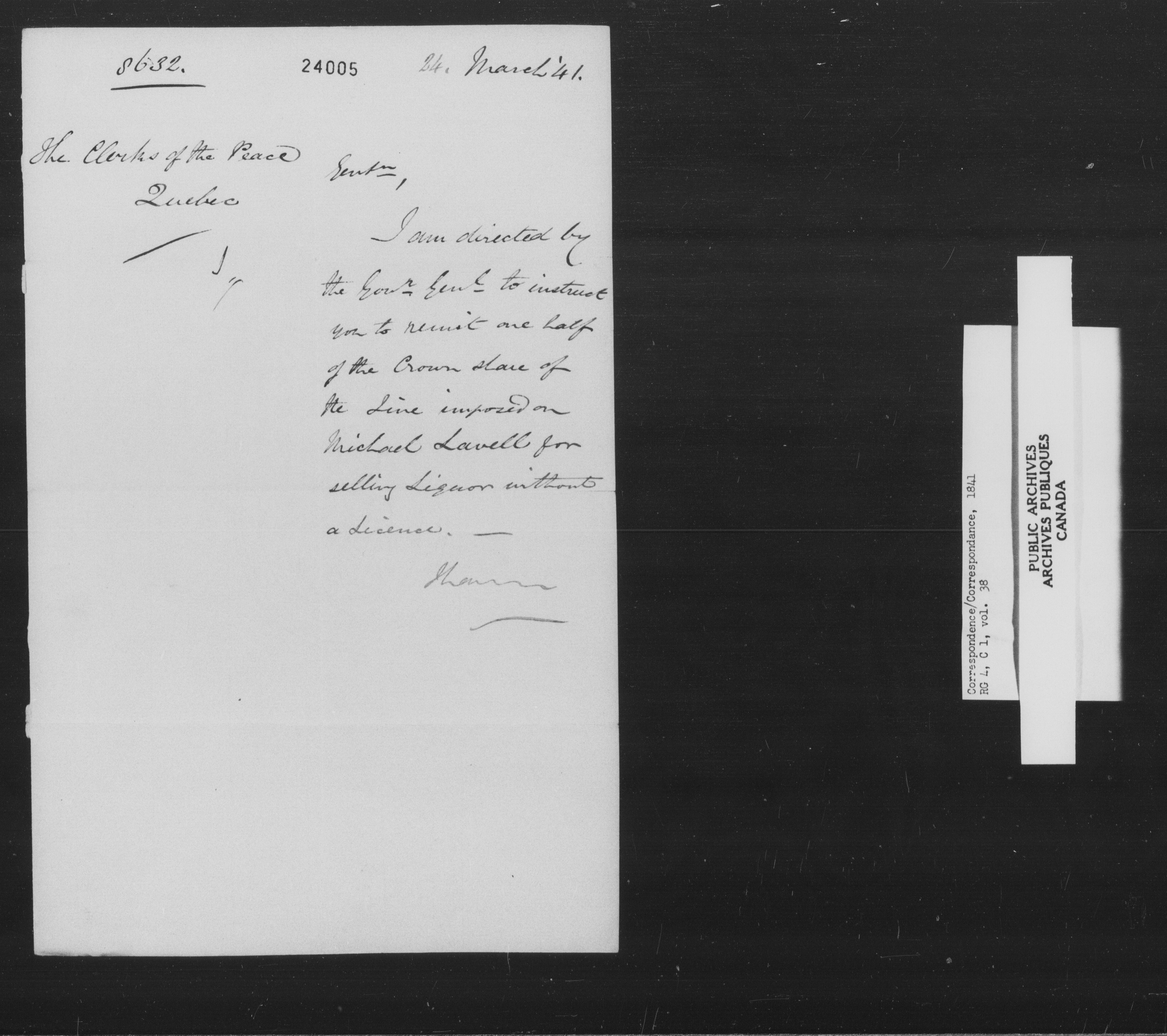 Canada East : Provincial Secretary numbered correspondence files, 1839-1867 : C-10881